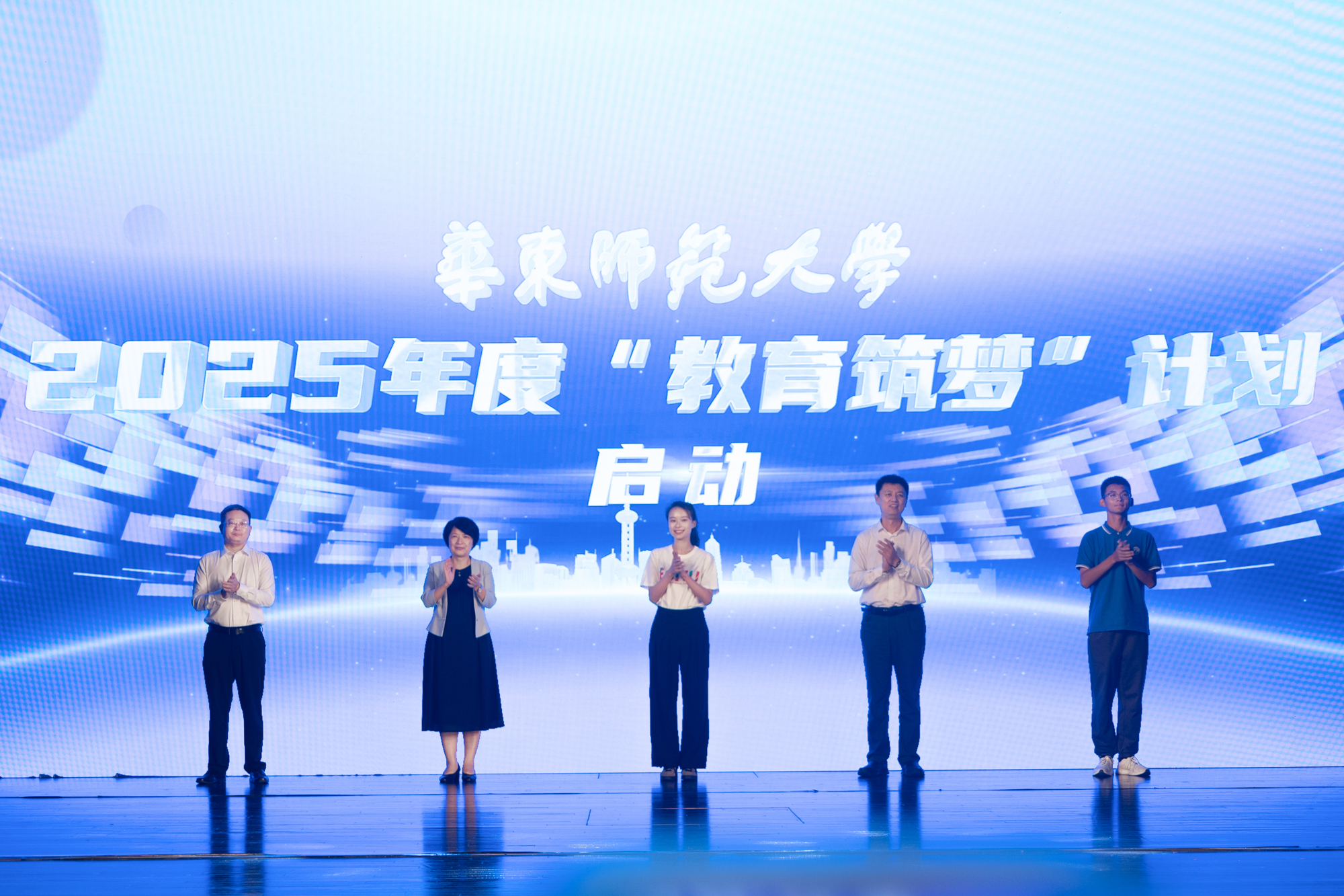 在活动现场,教育部教师工作司二级巡视员陈武、上海市教委副主任刘力、校党委书记梅兵与学生代表——音乐学院合唱指挥专业的研究生黄源知和孟宪承书院2024级化学师范专业本科生太淑昱共同启动了澳门永利皇宫官网入口2025年“教育筑梦”计划,也让自2020年教师节启动、2021年元旦正式实施的“教育筑梦”计划开启了聚焦教师成长、乡村美育、科创教育、心理护航等领域教育帮扶行动的新起点。