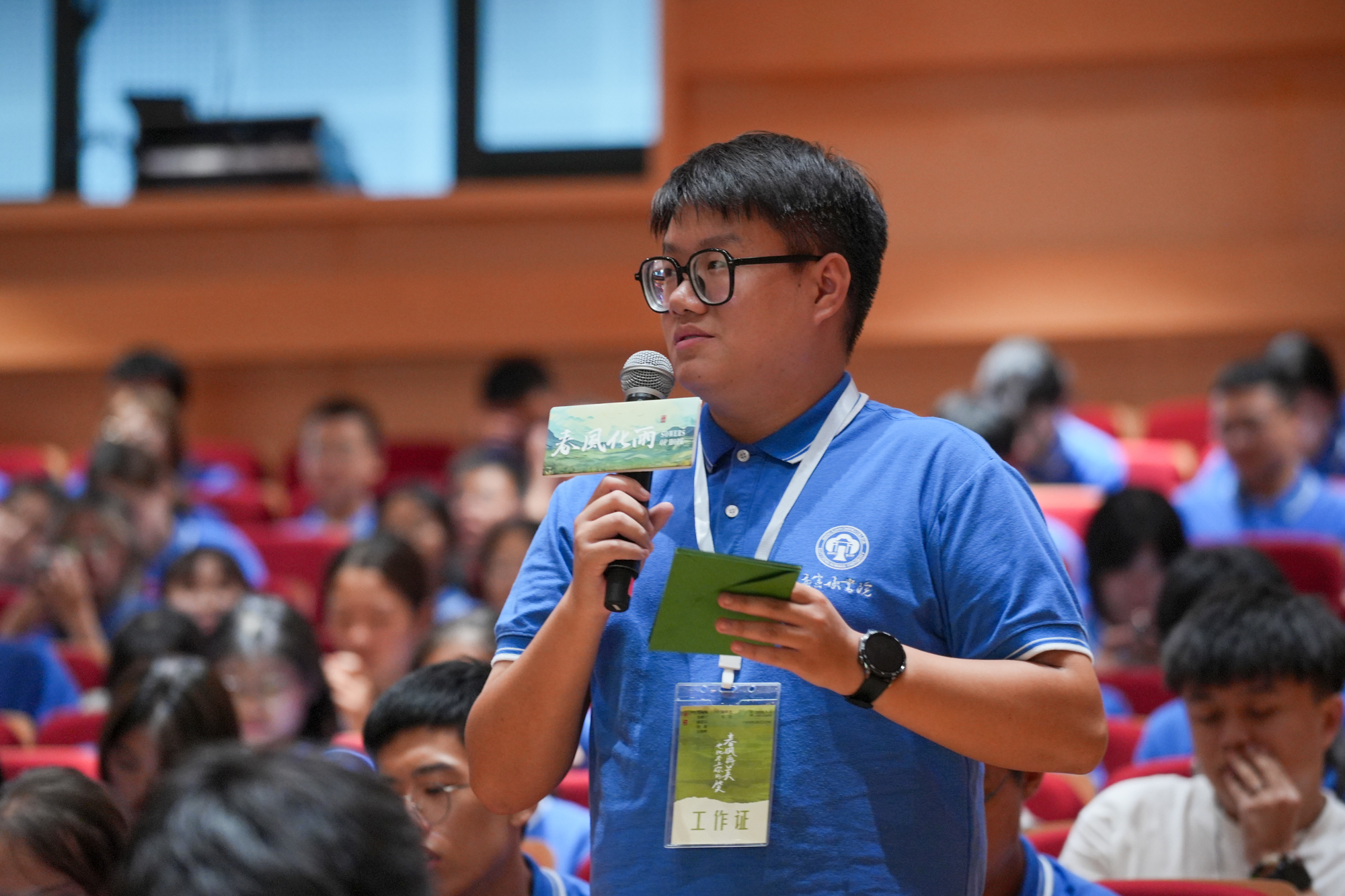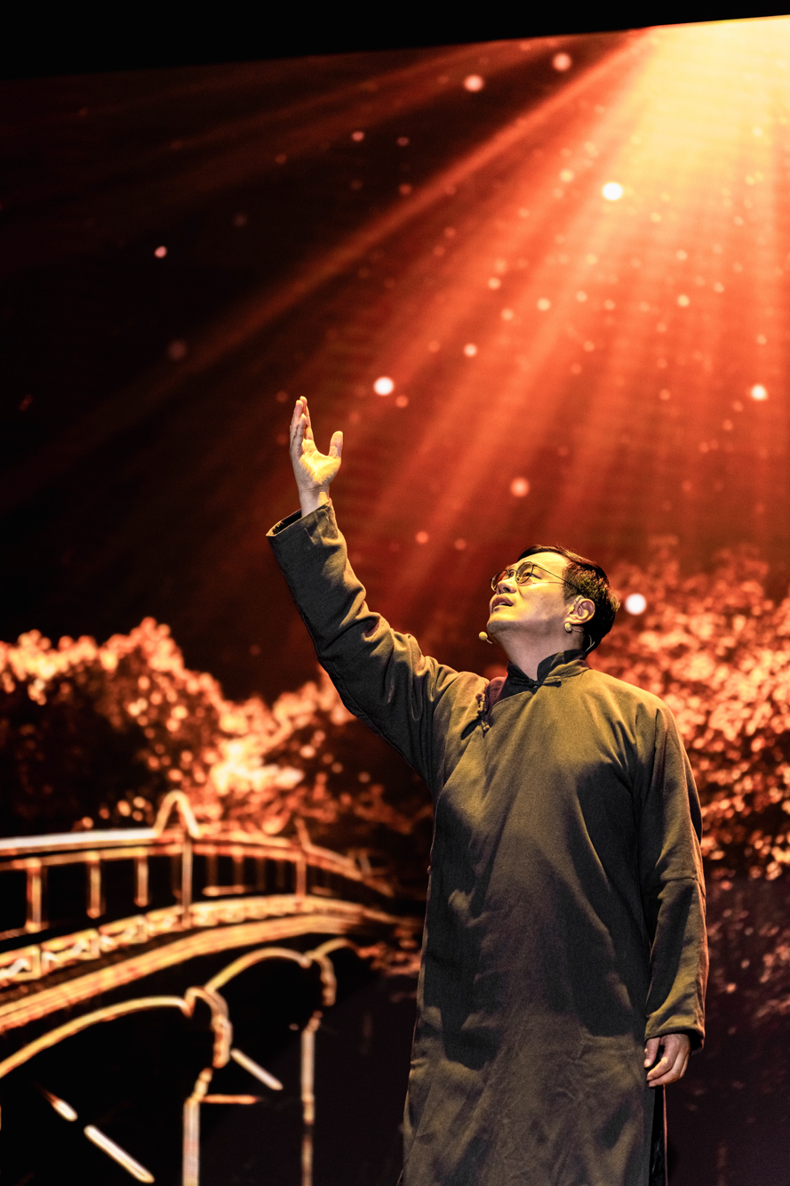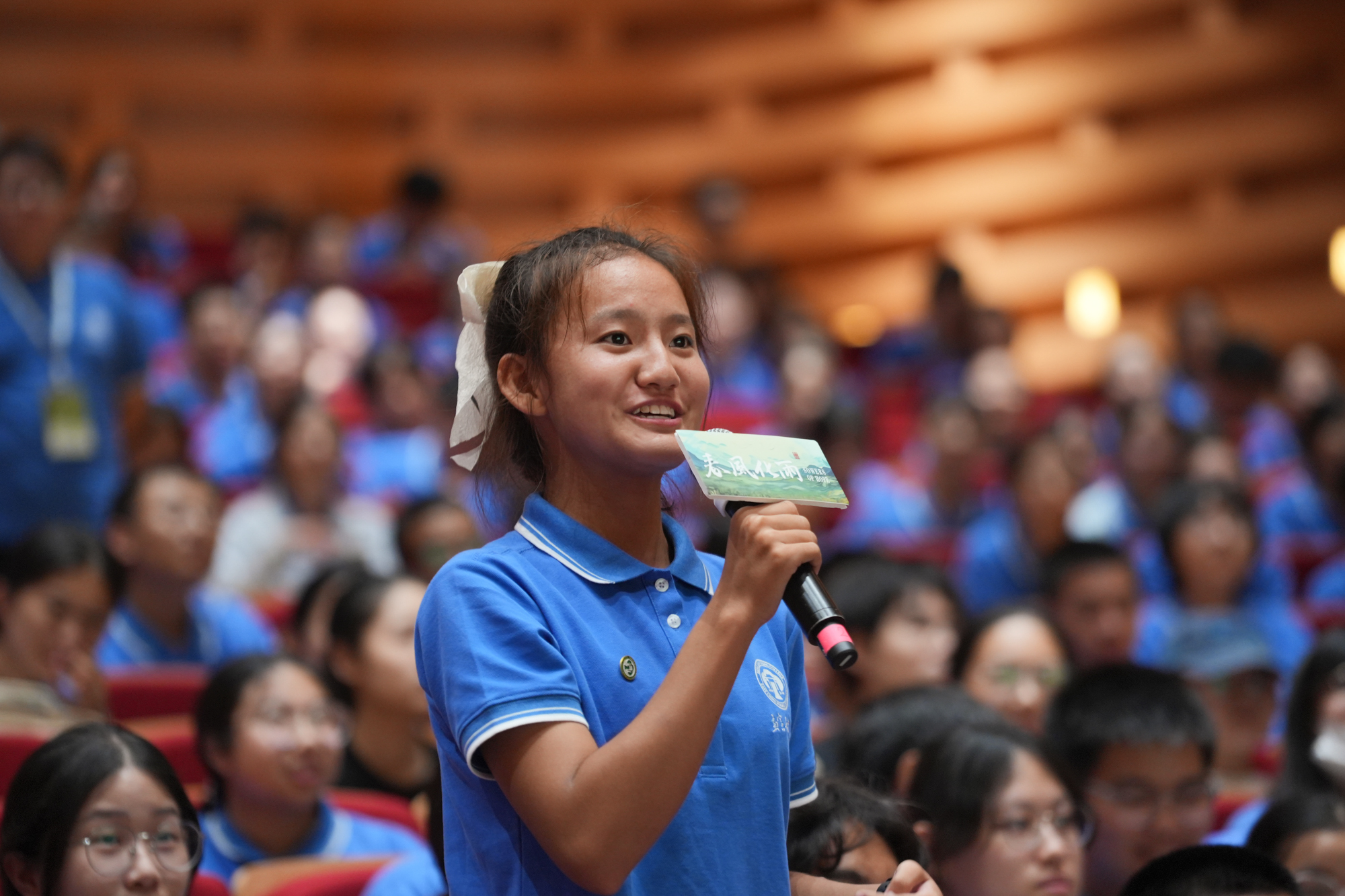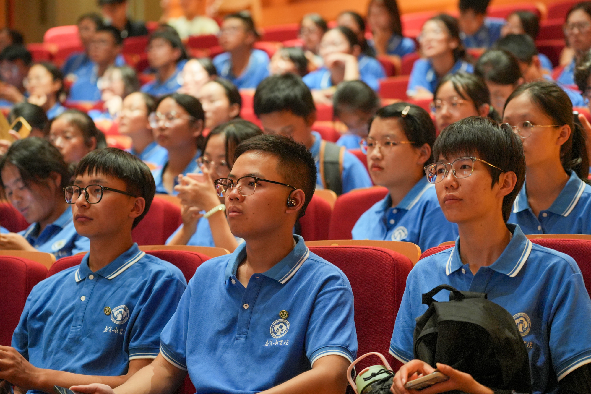 850余名身着孟宪承书院文化衫的2024级师范生新生无疑是活动现场最亮眼的存在。这场特别活动对他们而言更是学校精心打造的一场旨在通过思想与艺术对话让广大师生、特别是师范生,感悟教育真谛、明白使命担当和坚定教育理想的大思政课。