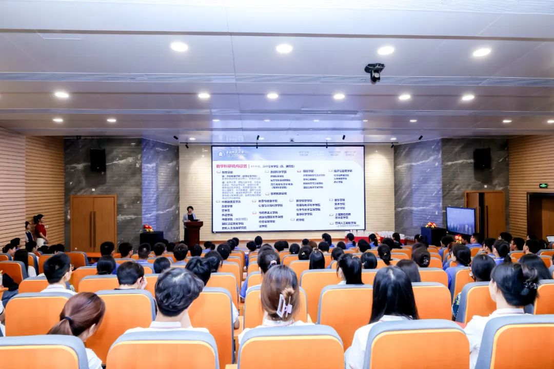 围绕学校卓越育人、卓越学术和通识课程三大纲要,梅兵书记详细介绍了学校育人思路举措,包括教师队伍、课程专业、拔尖人才培养、双创教育、国际交流、AI赋能育人创新、教师教育、养成教育和支撑保障,向新生们描绘了即将在华东师大开启的卓越成长之路。