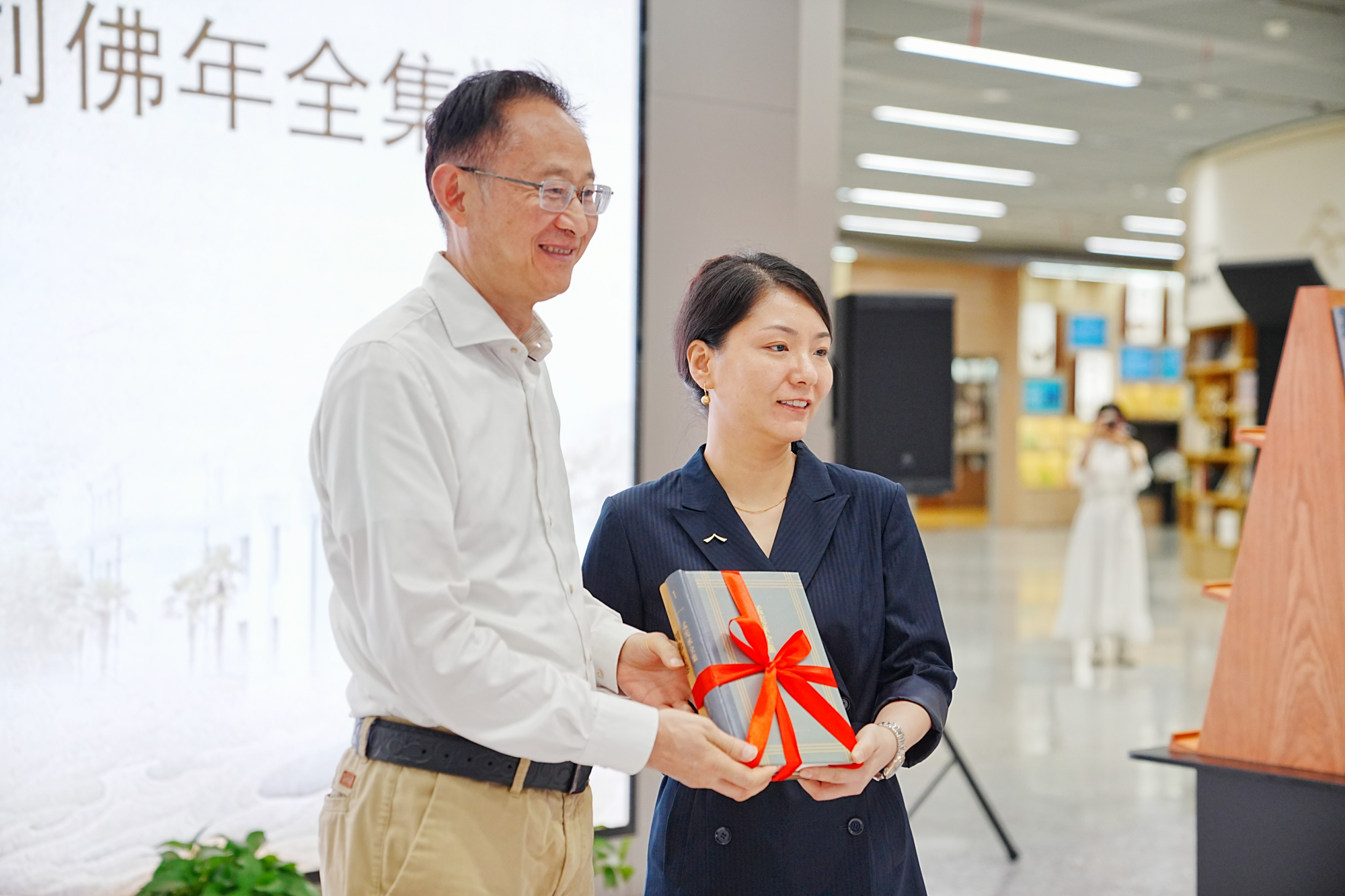 开幕式上,袁振国教授代表学校向上海市社会科学馆赠送了13卷本的《孟宪承全集》和《大夏教育文存·刘佛年卷》,后续相关著作将在上海市社会科学馆大师展区予以展示。