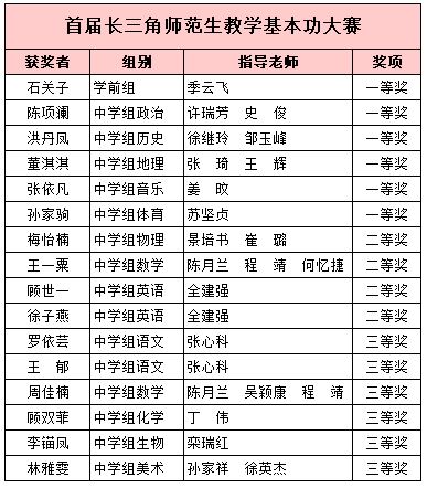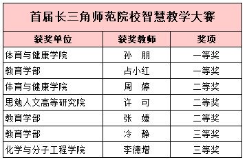 附:首届长三角师范院校教师智慧教学大赛和师范生教学基本功大赛我校师生获奖名单