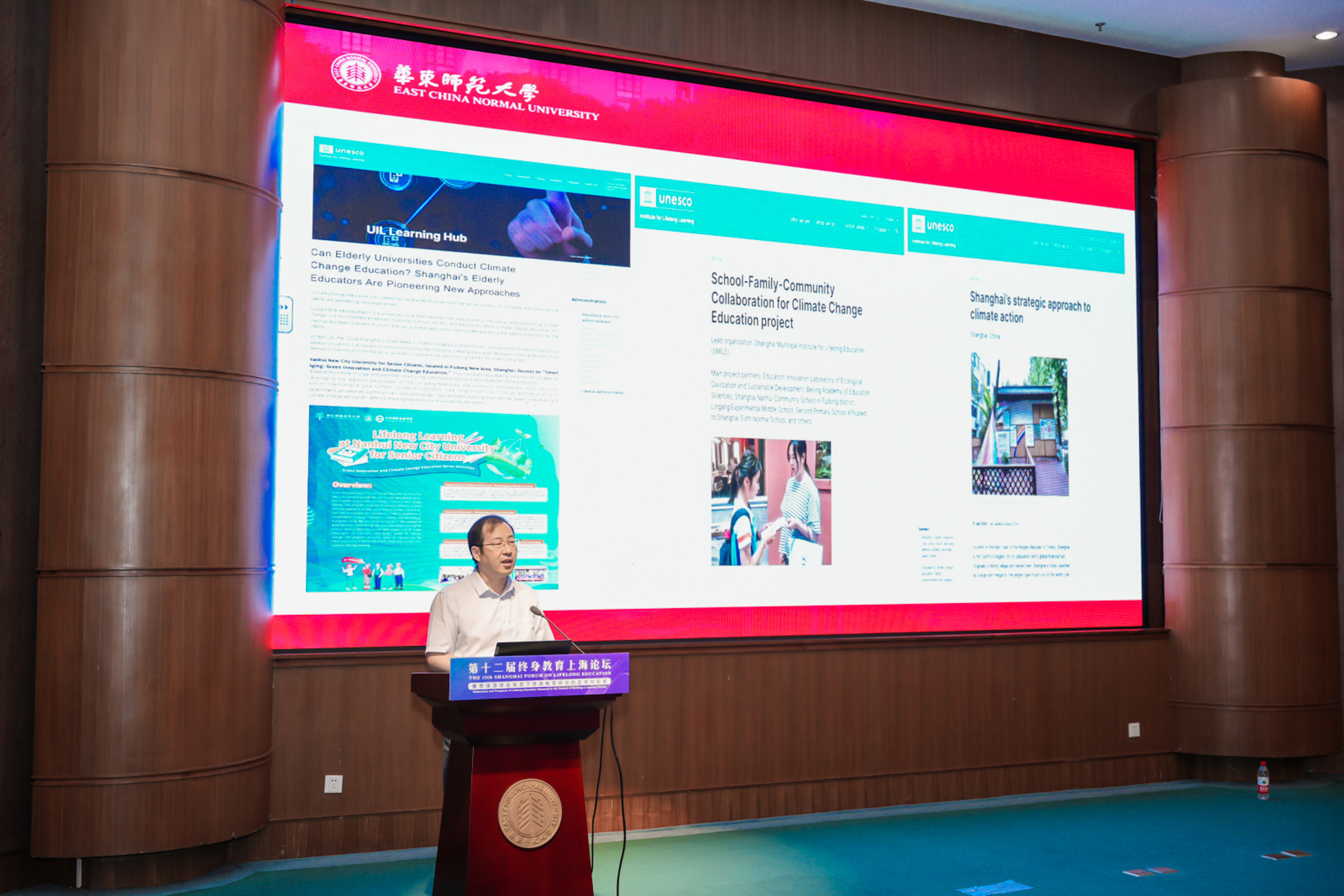 接着,李家成、张永、朱敏、马丽华代表上海终身教育研究院隆重进行了成果发布。在可持续发展教育方面,研究院本年度正式发布《上海可持续发展教育社区行动计划(2024-2026)》,并推动上海成为全球学习型城市网络的重要协调城市,向全球分享了上海的创新经验。聚焦老年教育领域,研究院启动了“老年教育实验室”,整合多学科力量,致力于提升老年人的身心健康、社会参与和文化适应,推动老年教育理论与实践的创新发展。目前研究院持续开展的气候变化教育项目,由研究院组织报送的上海南汇新城镇老年大学和静安区老年大学、七宝明强小学的典型案例,已经经遴选被收录入联合国教科文组织终身学习研究所的数据库,并被教科文组织终身学习研究所收录为12个国际城市开展气候变化教育的典型案例。