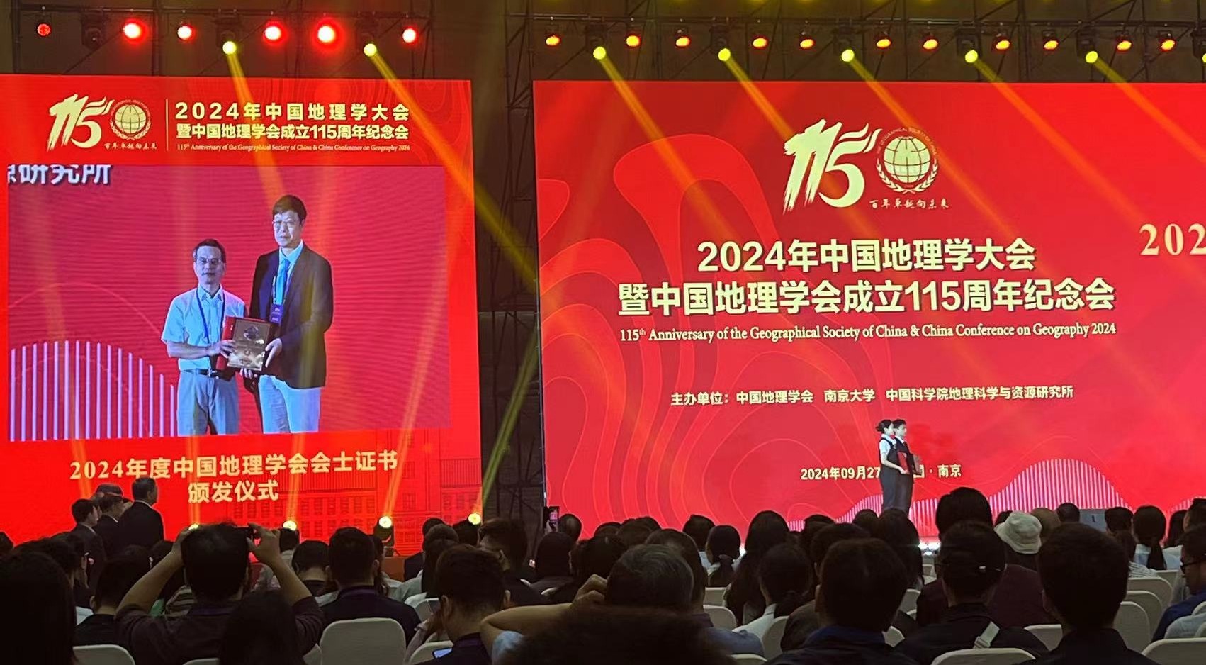 9月27日,2024年中国地理学大会暨中国地理学会成立115周年纪念会开幕式在南京国际博览会议中心中华厅召开。本次大会以“中国地理学的发展与创新”为主题,来自国内外500多所相关高校、科研院所和企事业单位的3000多名学者参加了这场地理学领域的盛会。