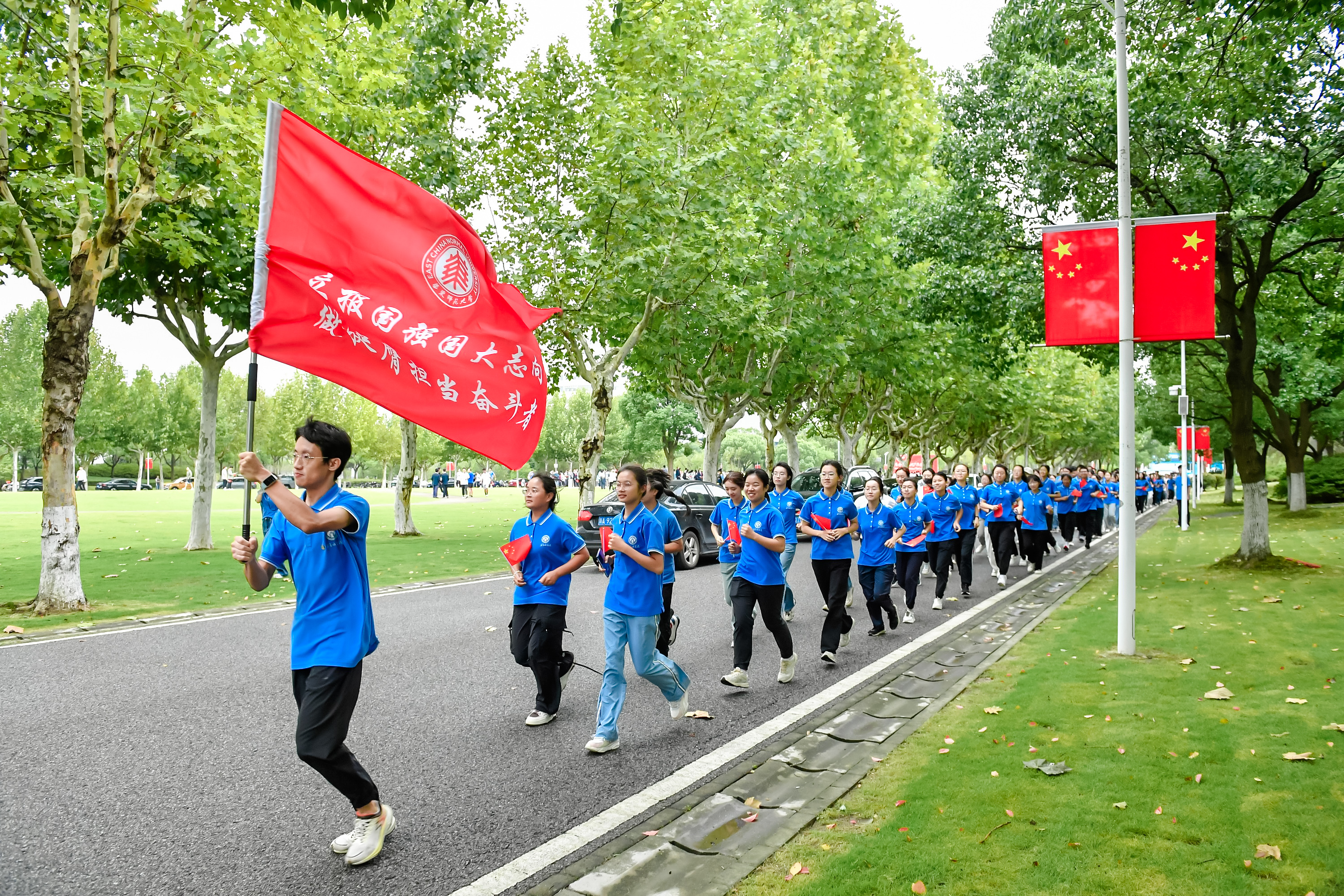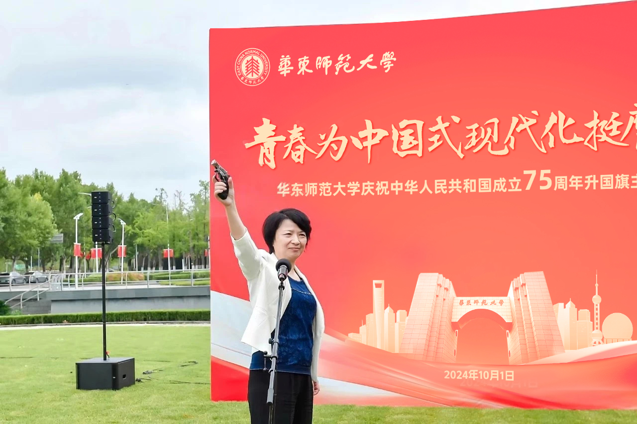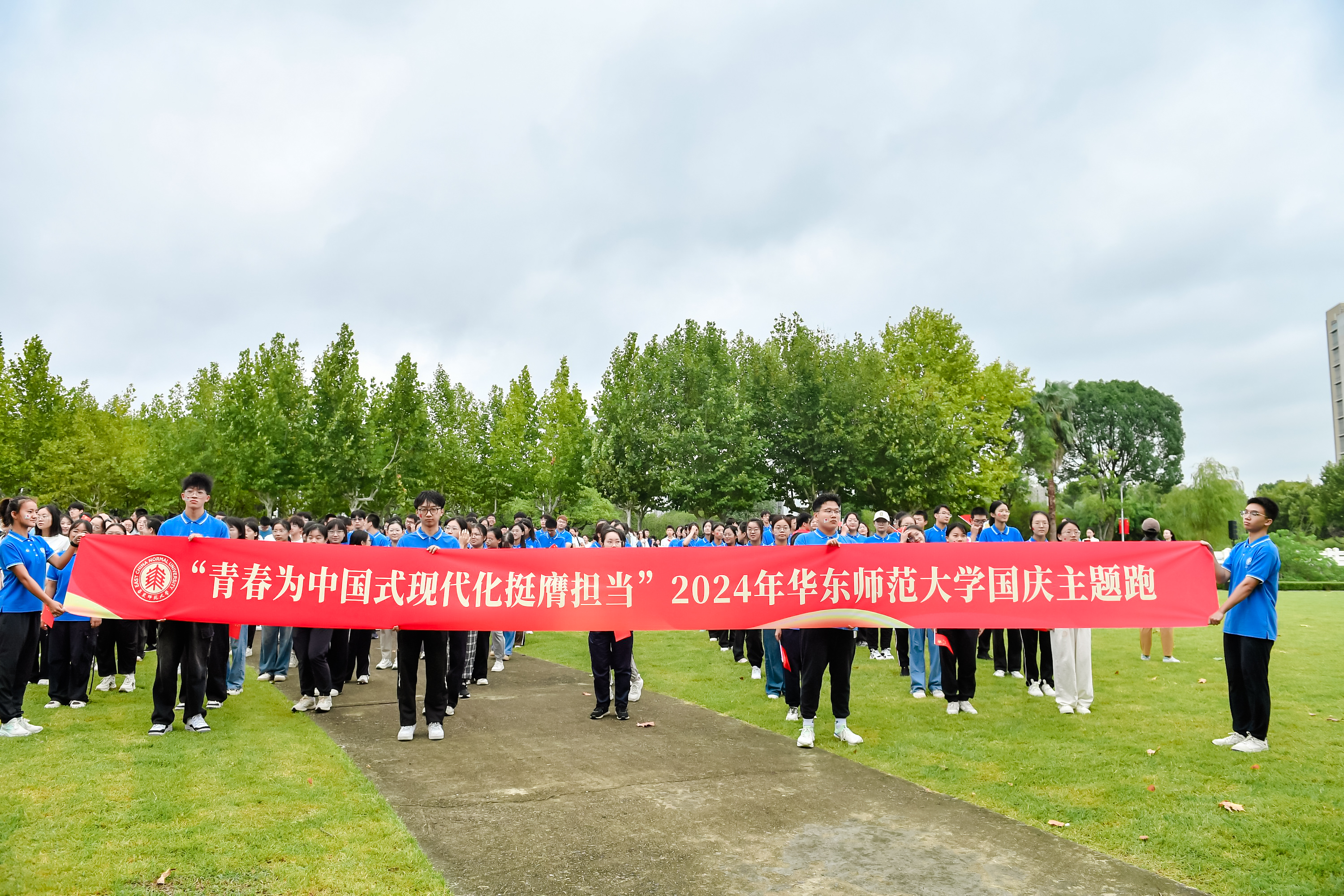 澳门永利皇宫官网入口党委书记梅兵为澳门永利皇宫官网入口国庆主题跑活动发令。全体师生在“青春领跑人”物理与电子科学学院、孟宪承书院2023级苏琛博的带领下,在华东师大的校园中跑出“75”的轨迹路线,共同祝福祖国繁荣昌盛。