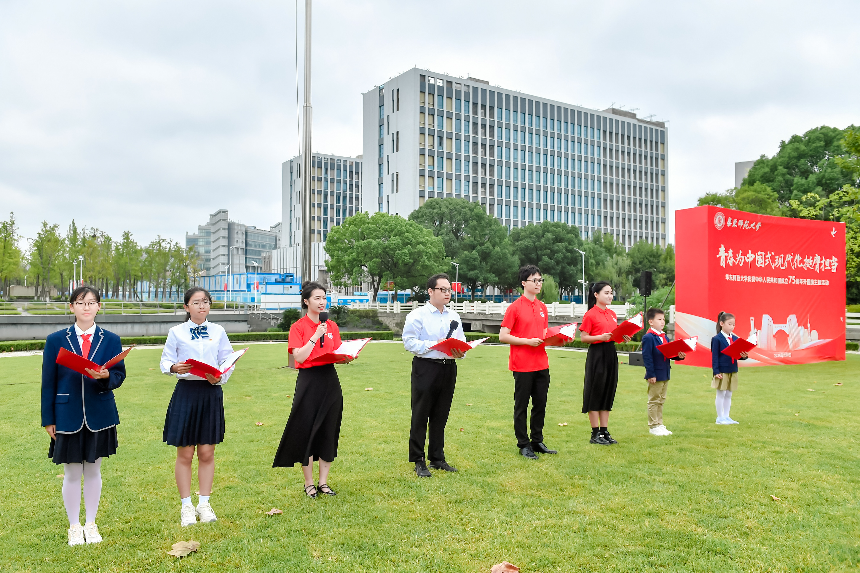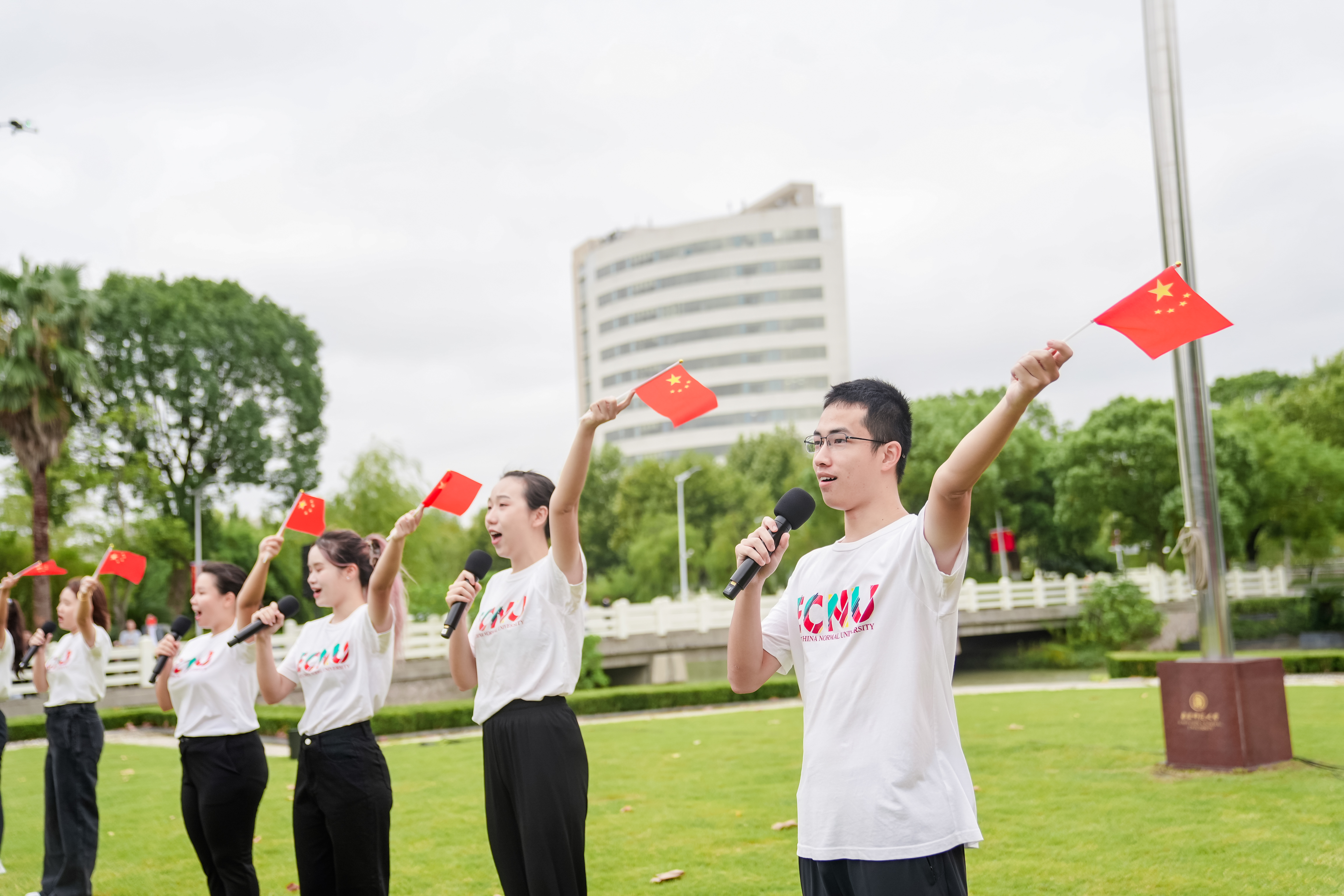 “这是一个新时代,中国正在强起来;这是我们的时代,谁都有机会出彩。”现场师生在华东师大学生艺术团VIVA合唱团的带领下,共同唱响《强国一代有我在》,用歌声表达炽热的爱国情怀。