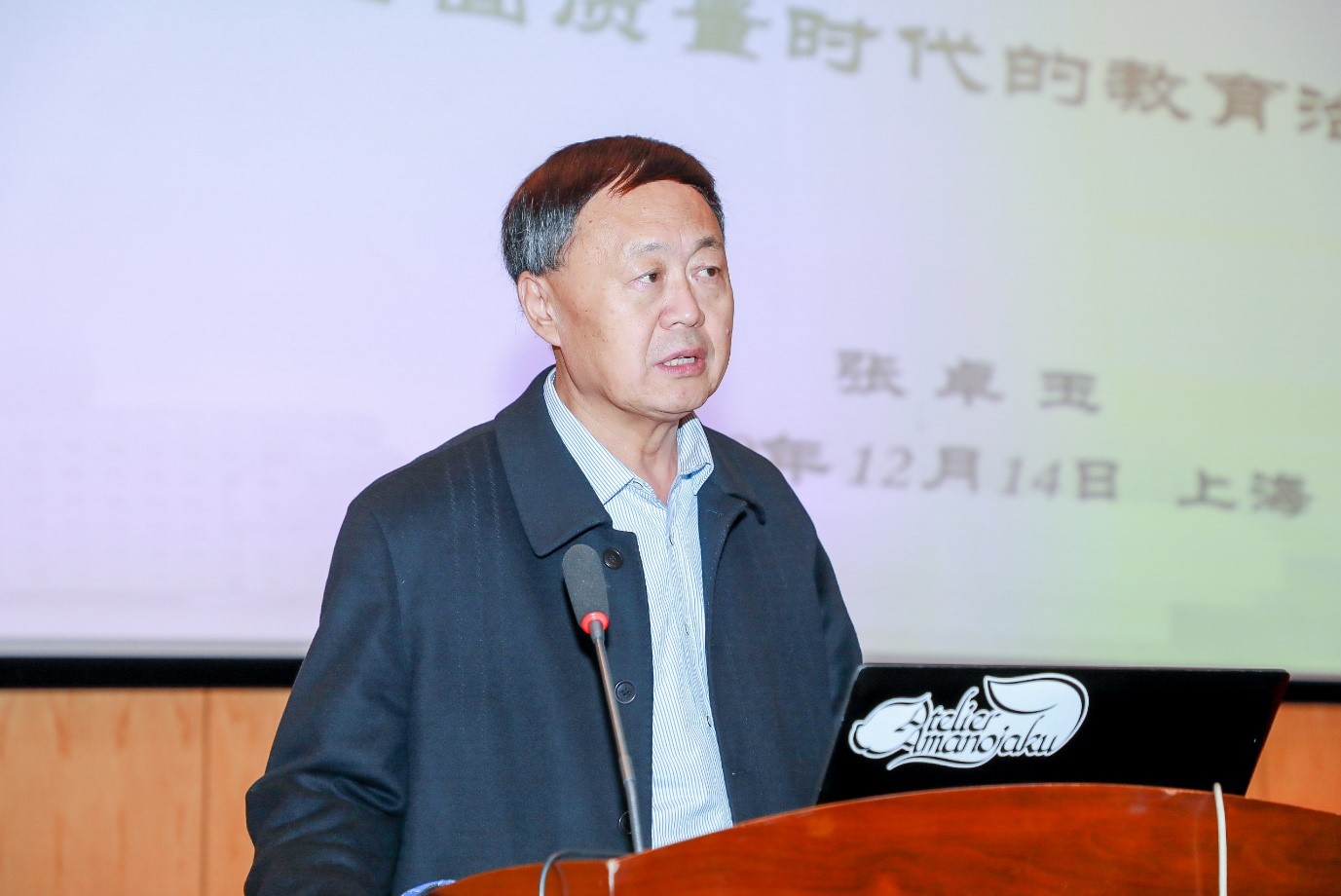 国家教育考试指导委员会委员、山西省教育厅原副厅长张卓玉以《全面质量时代的教育治理》为主题进行了演讲。他指出,当前国家迎来了“全面质量时代”的新契机,在这个重要的历史背景和政策情境下,从保障性质量、过程性质量、测评性质量和公平性质量四个维度,阐述了关于全面质量的理解,进而介绍全面质量时代教育治理方式改革的着力点和推进方向。