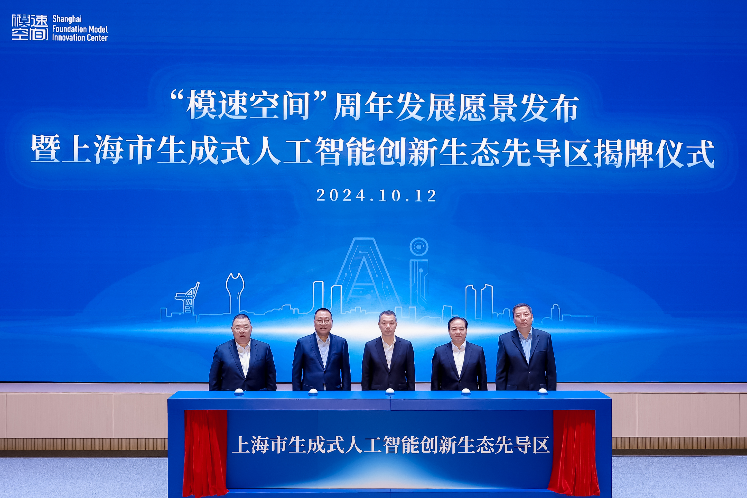 仪式上,陈杰、庄木弟、曹立强、戎之勤、袁国华共同为“上海市生成式人工智能创新生态先导区”揭牌。仪式上还展示了模速空间一周年发展成果,并发布上海市生成式人工智能创新生态先导区建设愿景。