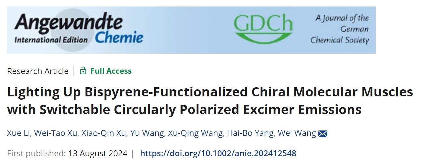 相关研究成果以Lighting Up Bispyrene-Functionalized Chiral Molecular Muscles with Switchable Circularly Polarized Excimer Emissions为题,发表在Angewandte Chemie International Edition 杂志。
