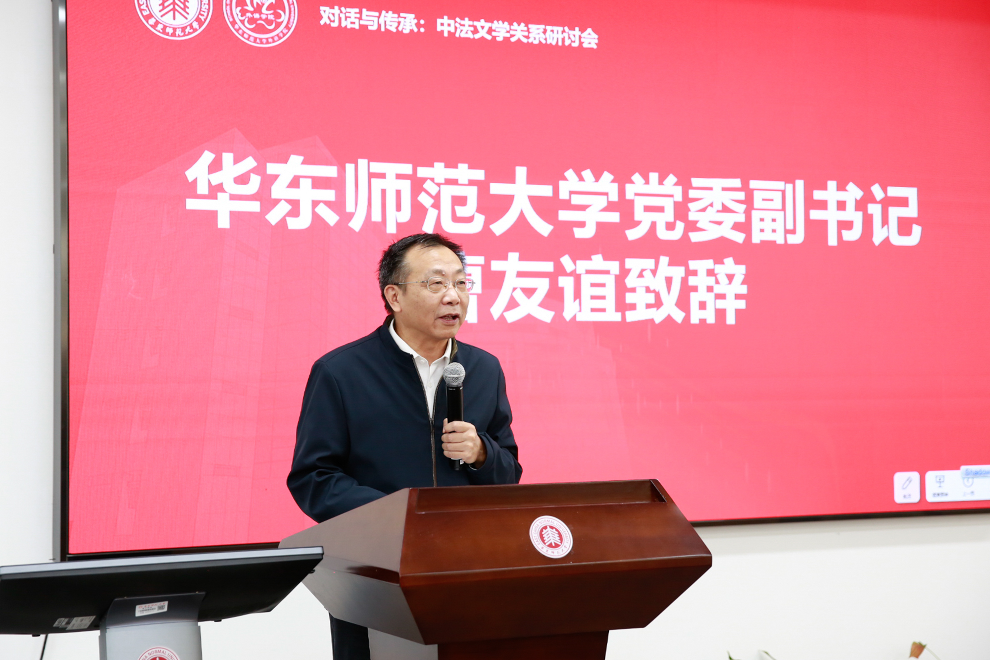 曹友谊对各位专家学者的到来表示热烈欢迎,并指出,今年是中法建交60周年,也是华东师大前身学校之一大夏大学建校百年。他回顾了华东师大在中法文学交流中的贡献,希望学者们在此次盛会中碰撞出思想的火花,期待华东师大能继续作为文化交流的桥梁,发挥更大作用。