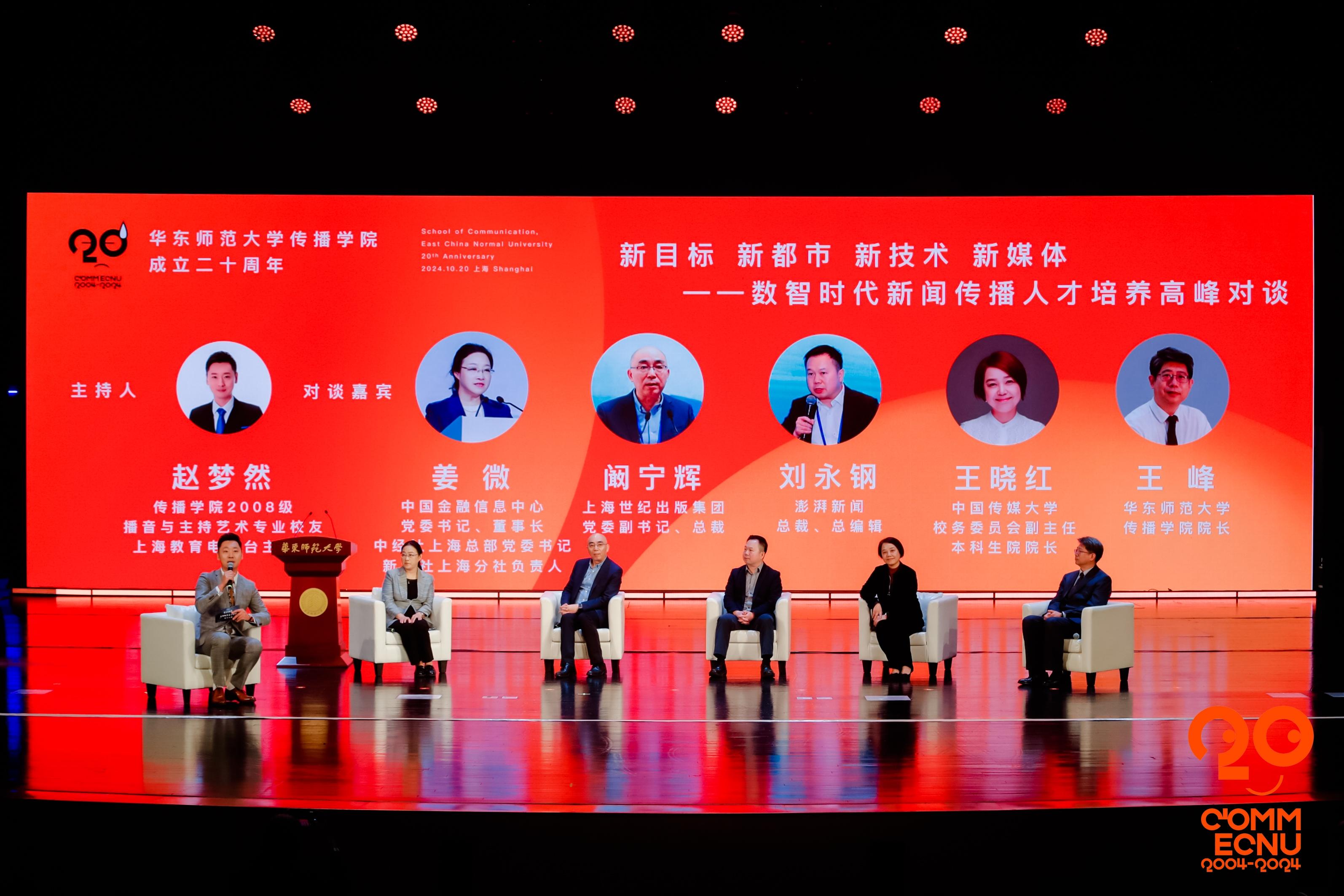 中国金融信息中心党委书记、董事长、中经社上海总部党委书记、新华社上海分社负责人姜微,上海世纪出版集团党委副书记、总裁阚宁辉,澎湃新闻总裁、总编辑刘永钢,中国传媒大学校务委员会副主任、本科生院院长王晓红和澳门永利皇宫官网入口传播学院院长王峰等5位专家学者聚焦传播学院《改革发展展望》主旨报告,展开“新目标 新都市 新技术 新媒体——数智时代新闻传播人才培养高峰对谈”。