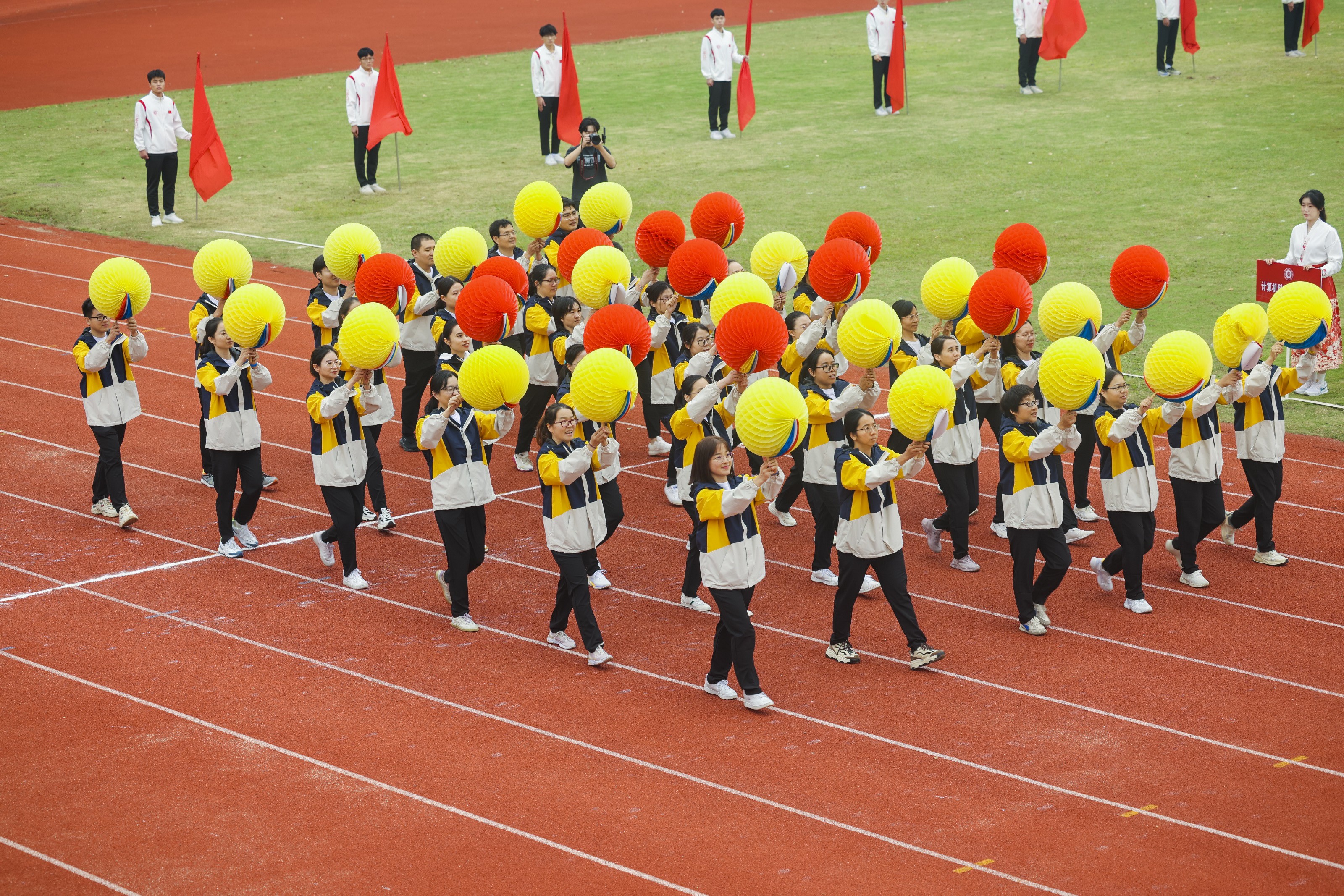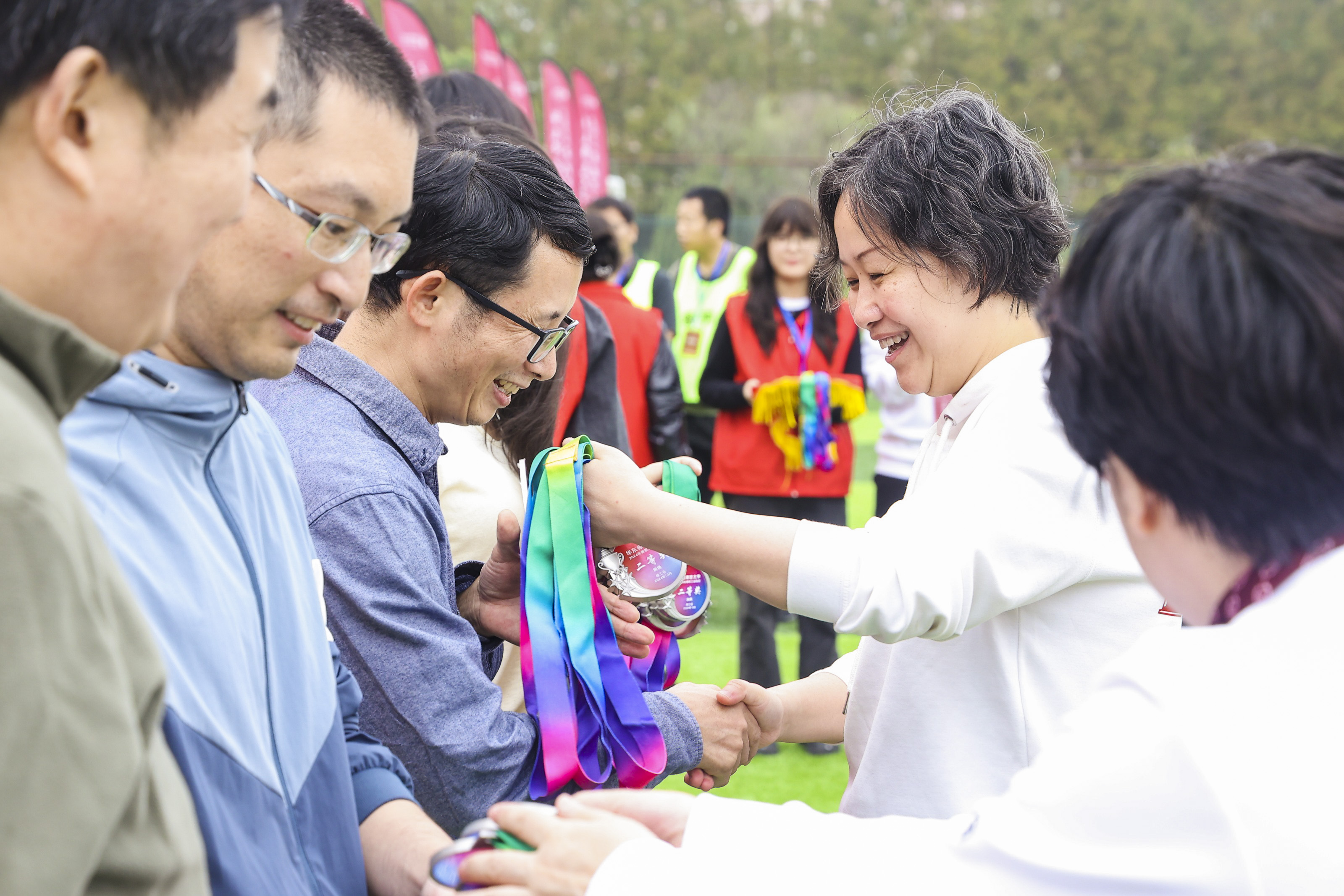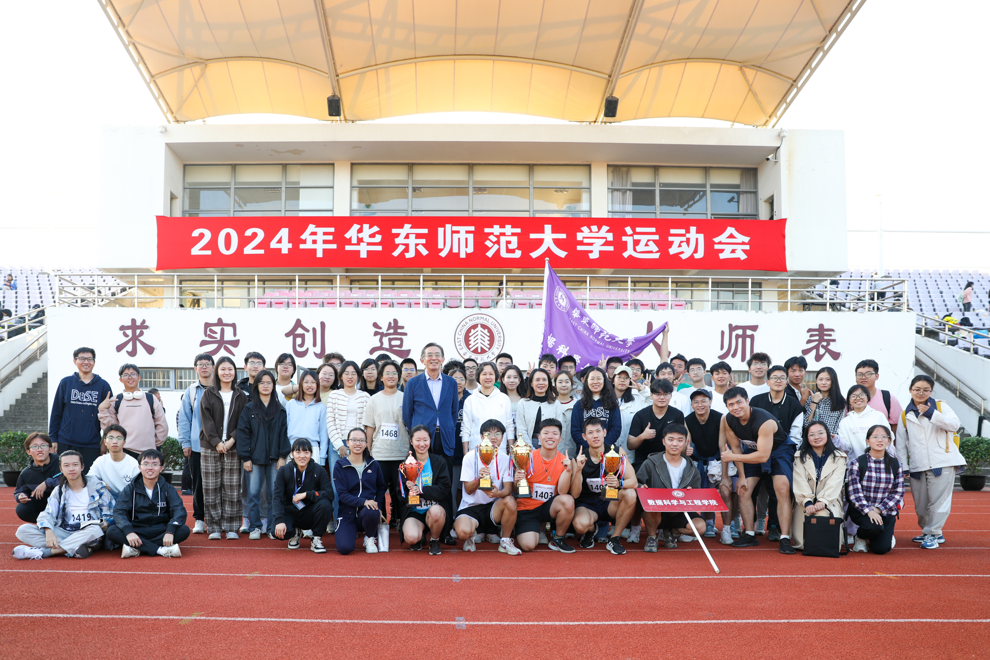 23日下午,2024年华东师大运动会闭幕式在闵行校区东田径场举行,副校长程静致闭幕辞并为获奖团队代表颁奖。