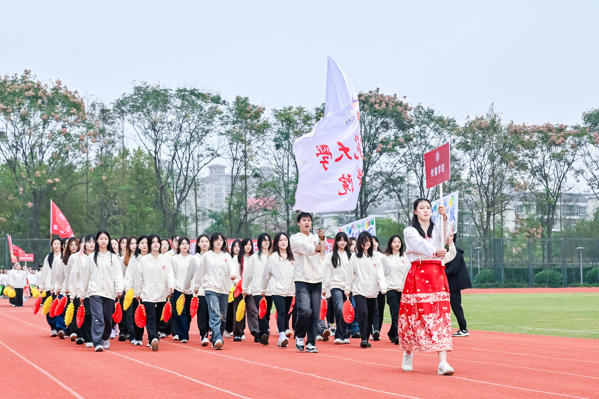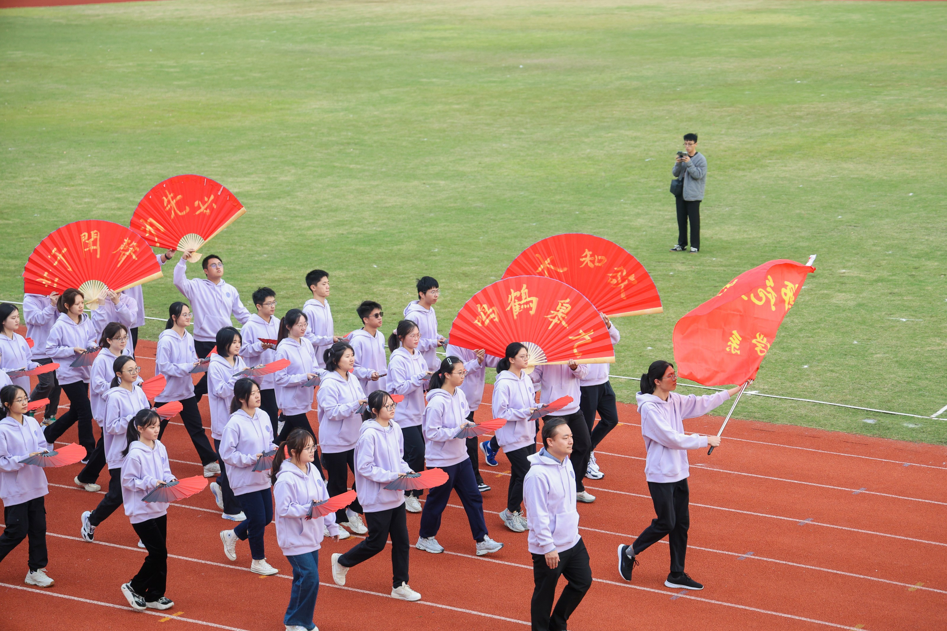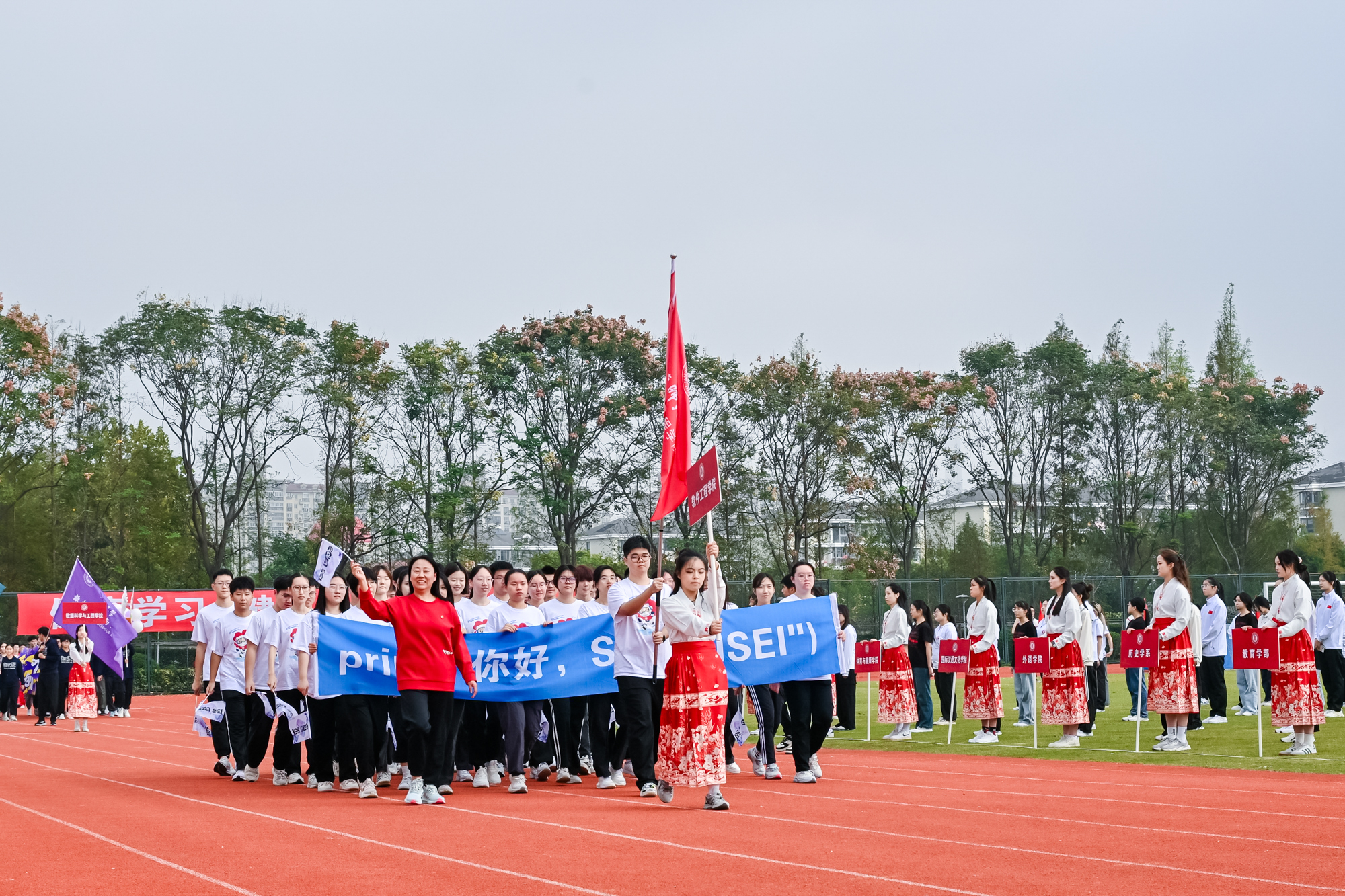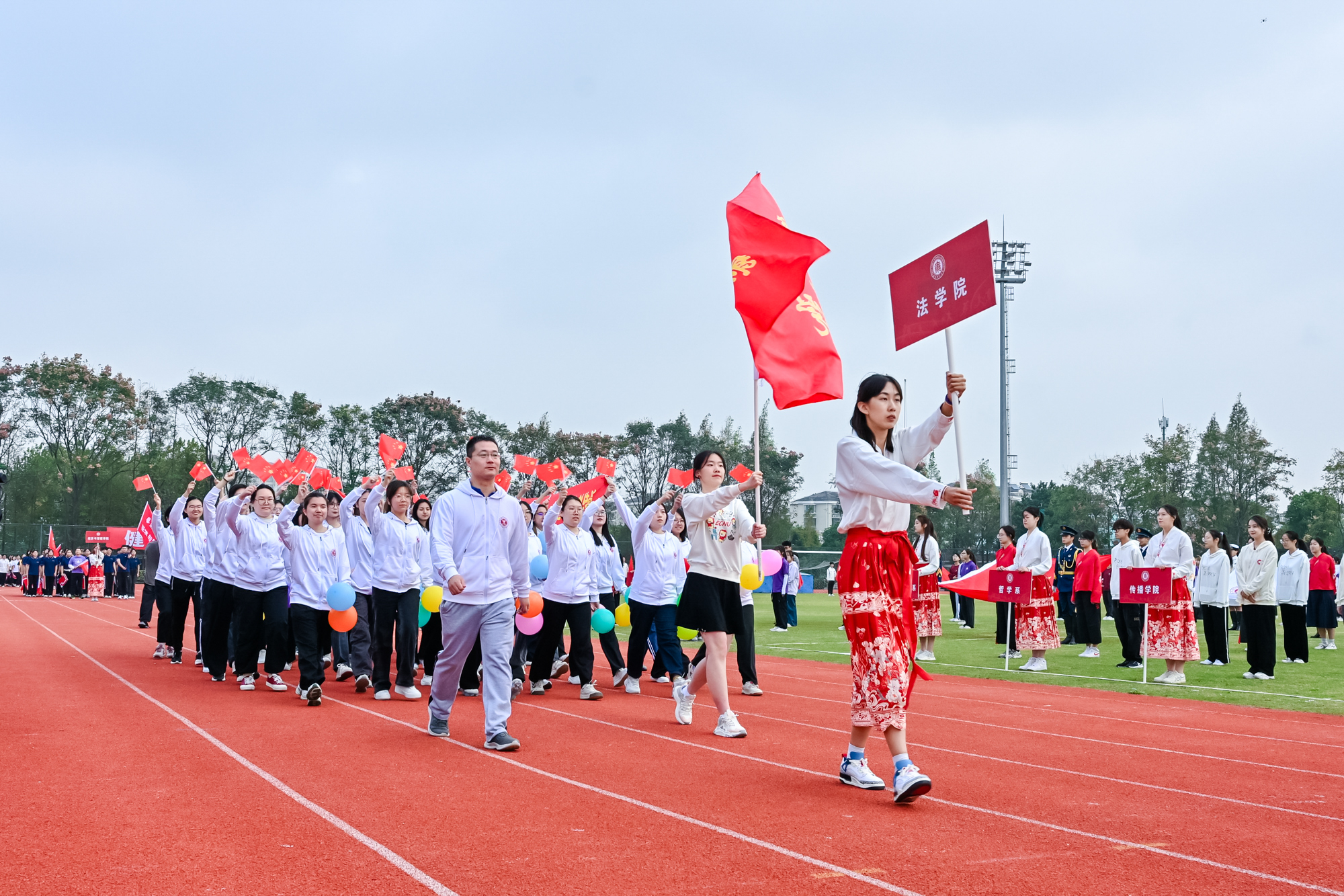 23日下午,2024年华东师大运动会闭幕式在闵行校区东田径场举行,副校长程静致闭幕辞并为获奖团队代表颁奖。