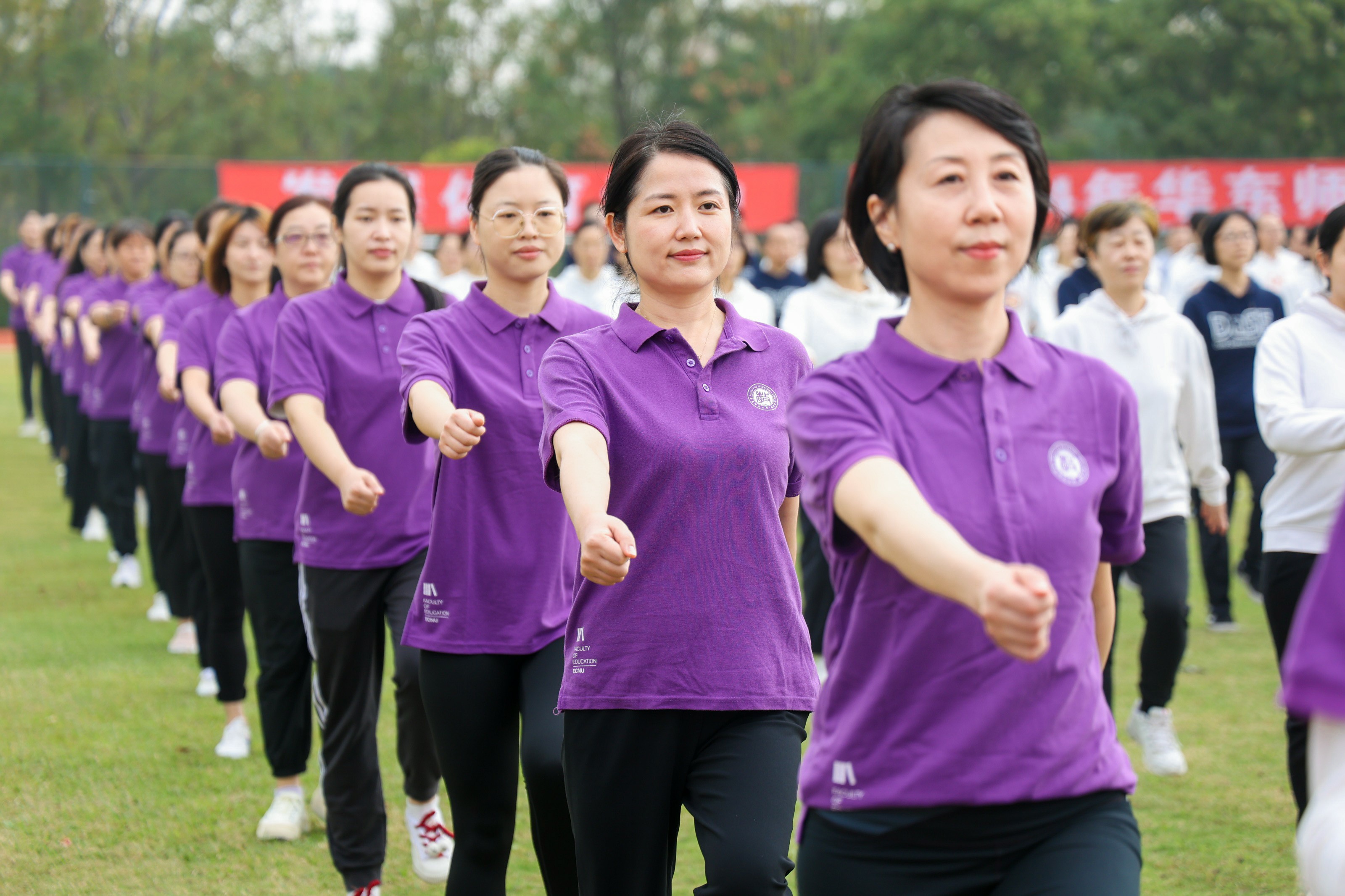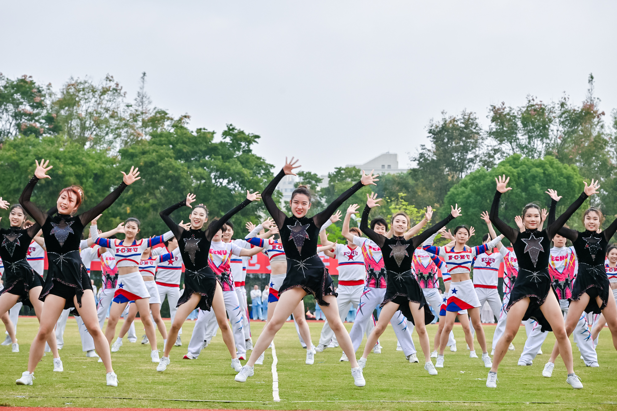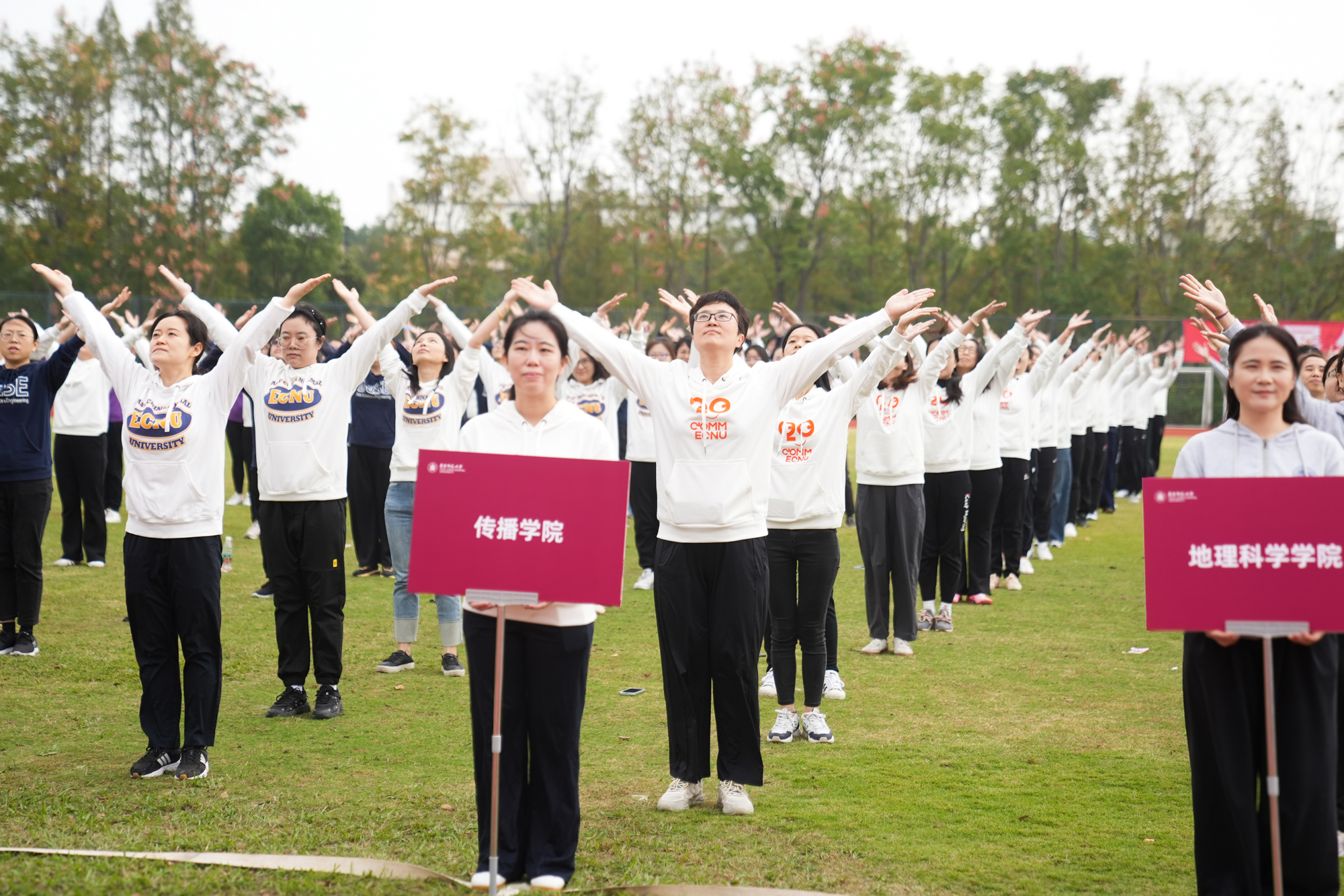 开幕式上还进行了学生广播体操表演、教工广播体操表演、华东师大健美操啦啦操队表演和教工太极拳表演。