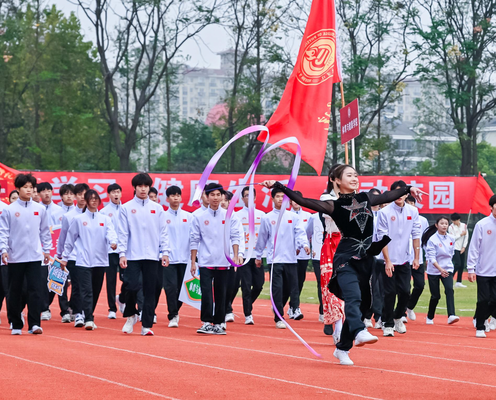在开幕致辞中,校长钱旭红回顾了过去一年华东师大运动健儿在国内外赛场取得的佳绩。在巴黎奥运会,华东师大四位田径健将——葛曼棋、林雨薇、秦伟搏、粟文,凭借卓越实力与不懈努力,入选中国奥运代表团,在赛场上挥洒汗水,展现师大人的不凡风采。在第18届世界健美操锦标赛上,华东师大学子在多个项目中发挥了关键作用,助力中国健美操队斩获金牌。