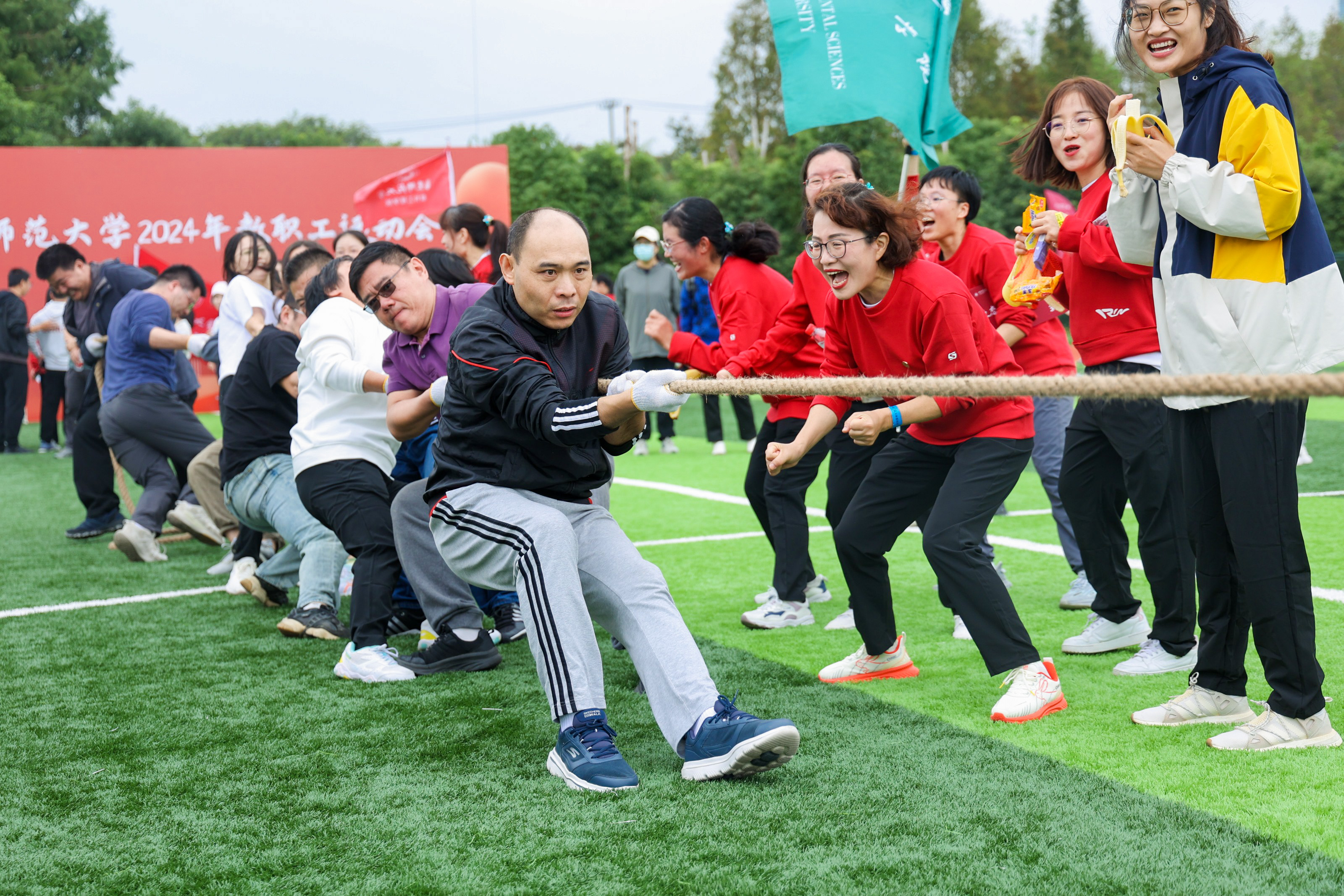 华东师大活力四射,2024年教职工运动会22日上午在西操场举行,千余名教职工同场竞技,欢乐多多。