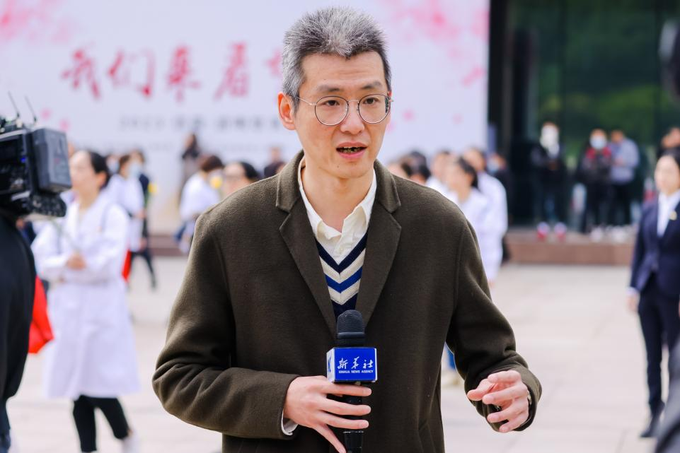 2023年4月,2002级校友、新华社上海分社编委、音视频部主任潘旭在龙华烈士陵园进行清明节报道