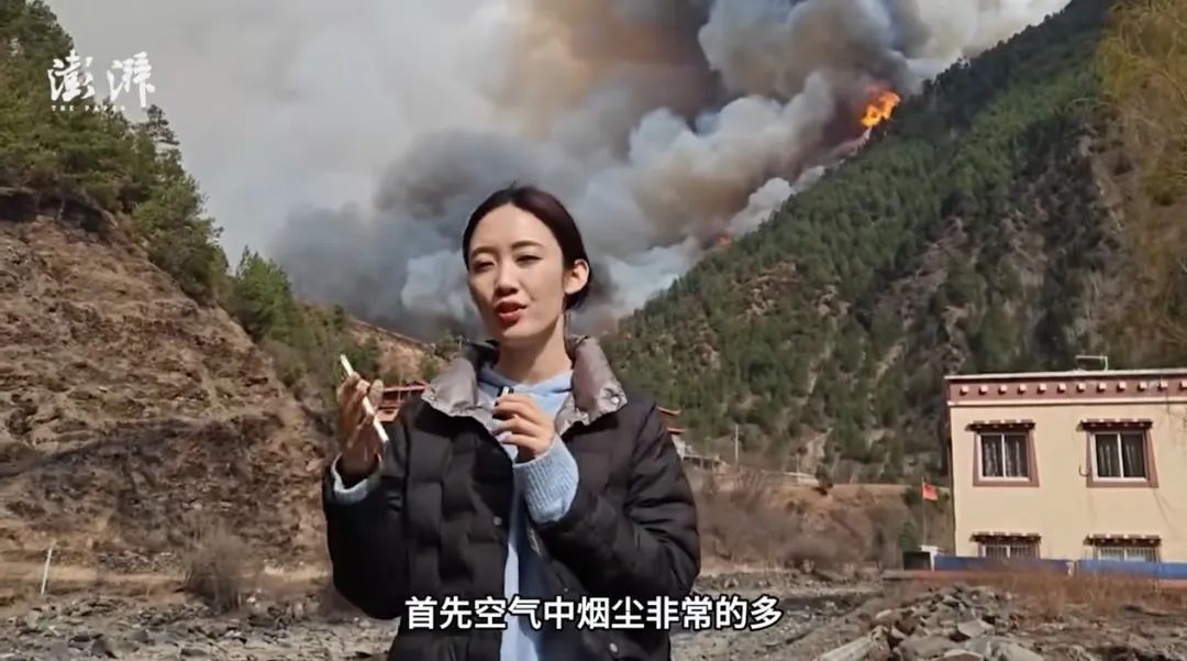 2024年3月,2017级校友、澎湃新闻记者王瑞在四川甘孜州山火雅江火场核心区报道现场