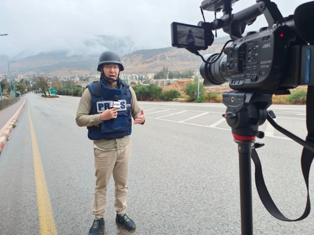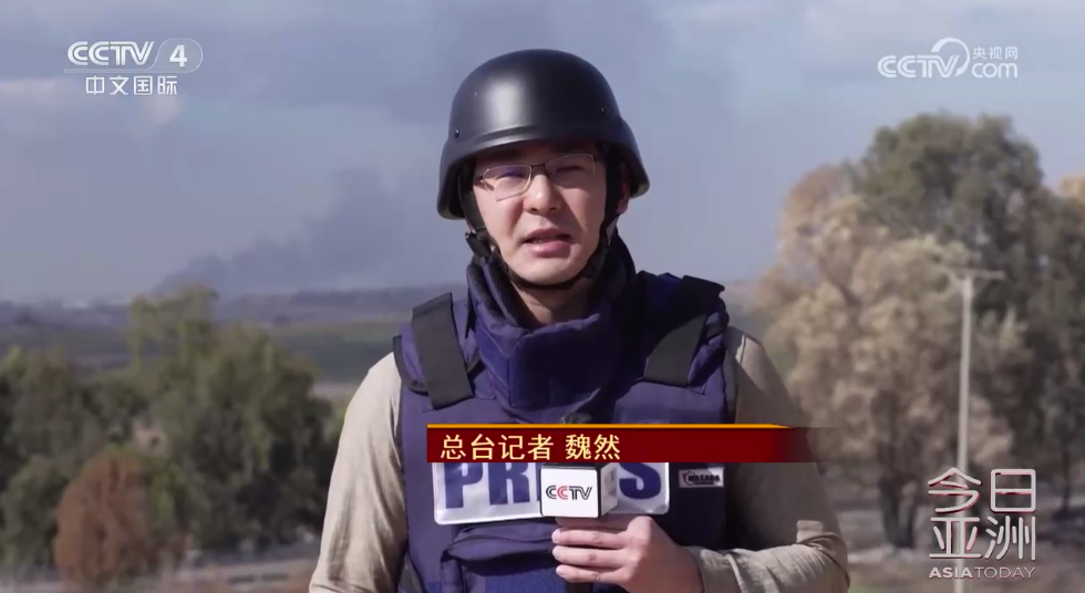 2023年11月,2005级校友、中央广播电视台总台记者魏然在以色列北部边界空袭现场附近直播报道