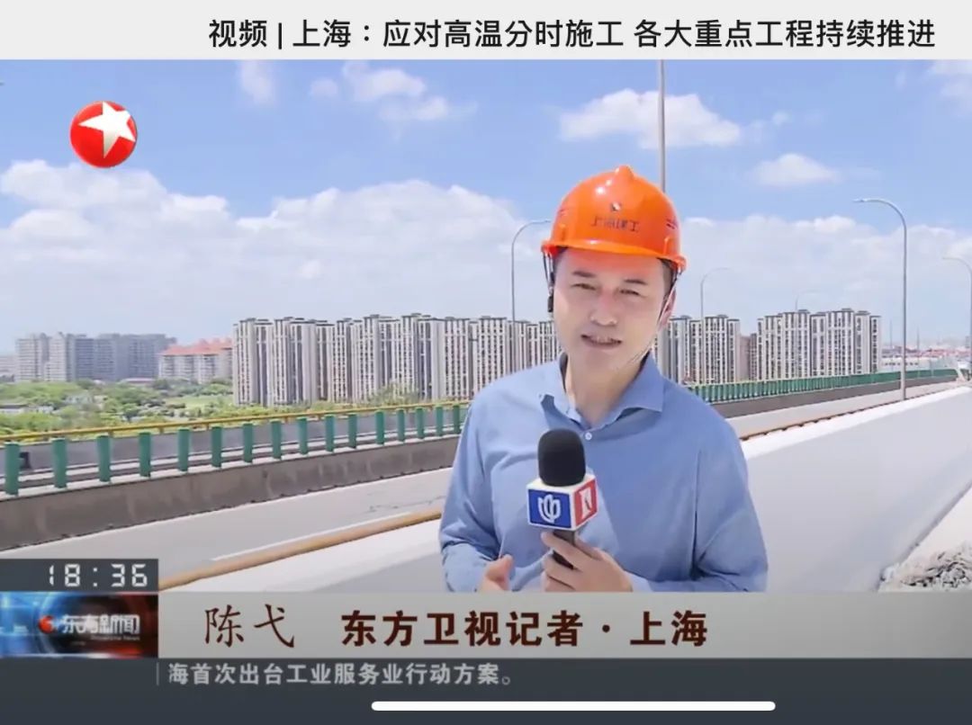 2024年8月,2005级陈弋校友、东方卫视记者,在高架工地报道高温下各大重点工程推进情况