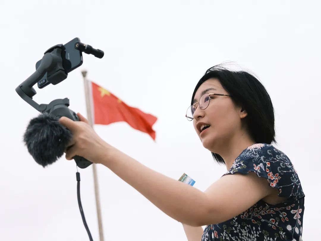 2012级校友、中国国家地理融媒体中心纪录片导演桂皓璇在摄制现场