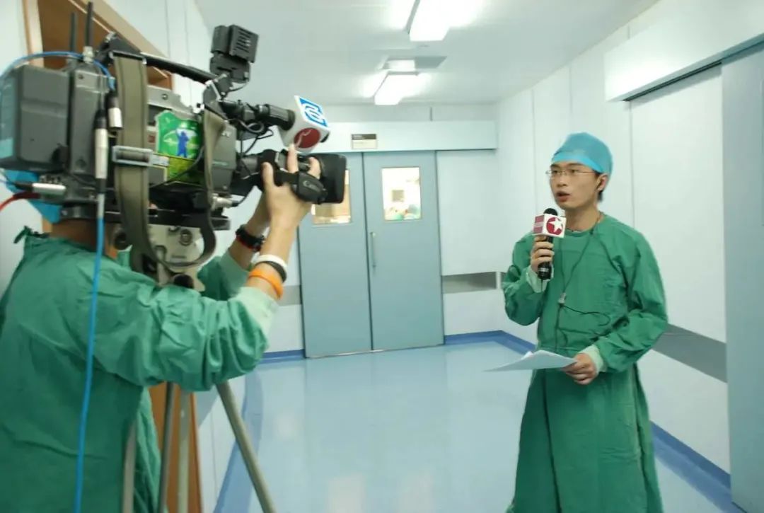 2007年1月,2001级校友、SMG融媒体中心新闻采访部副主任李吟涛在连体婴儿分离手术的直播报道现场