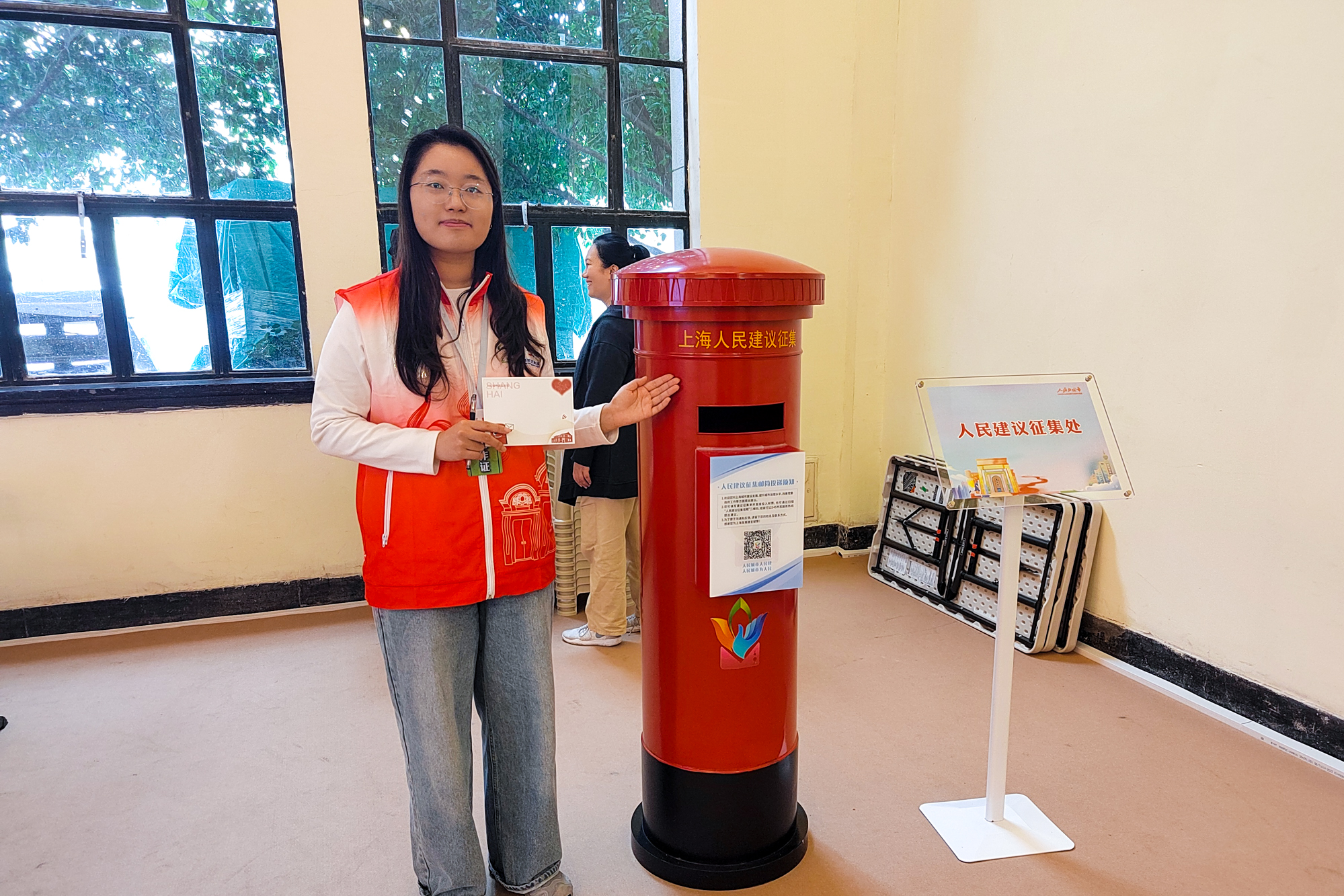 “这种方式会让观众们在展览中找到自己的身影,”教育学部2024级硕士研究生时静怡负责展览互动区,“这一部分内容十分丰富,市民投稿征集的笑脸照展示出大家对上海这座城市未来的期待,整墙的建议更是市民为上海城市建设提出的金点子、好主意。”