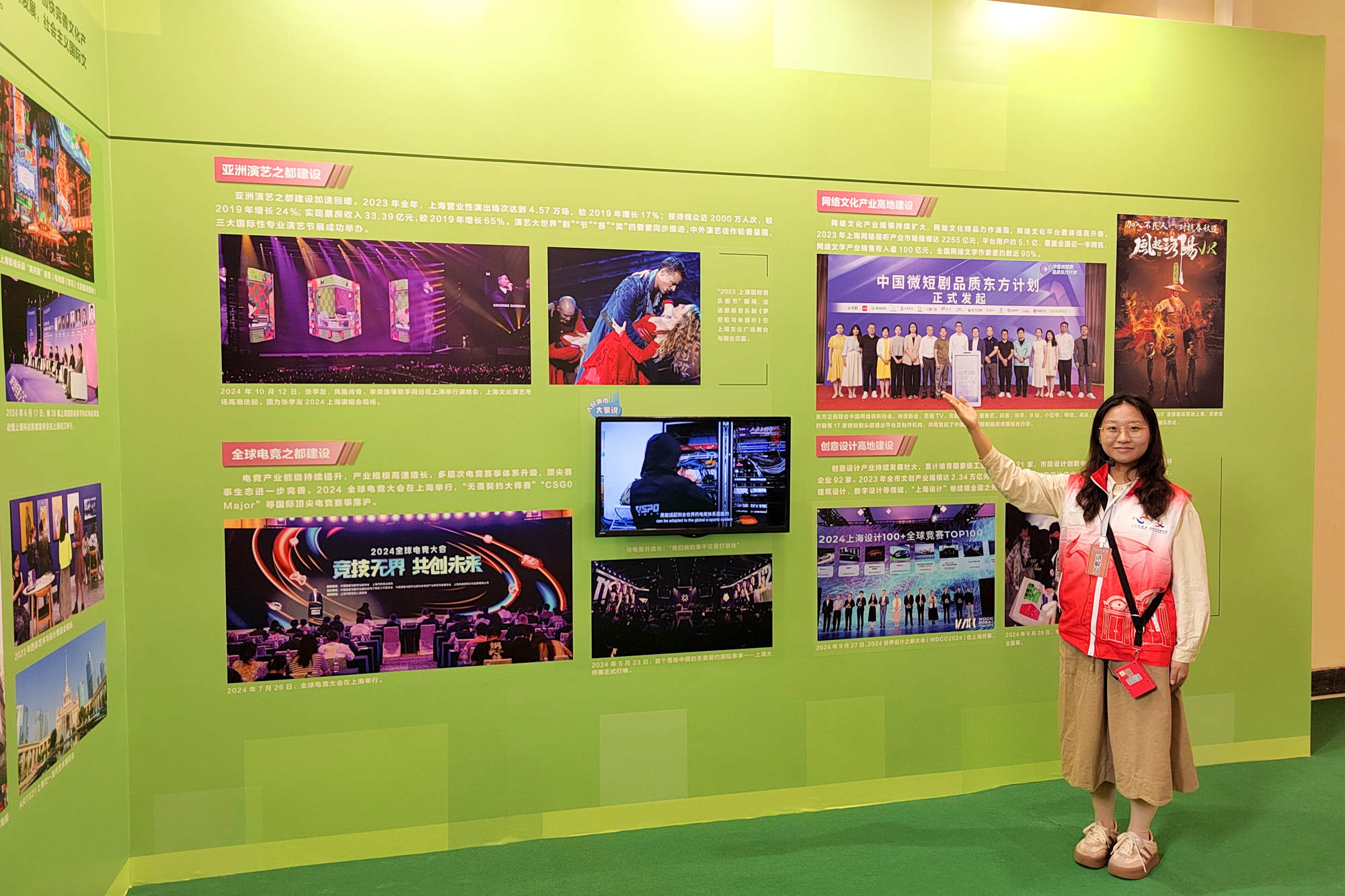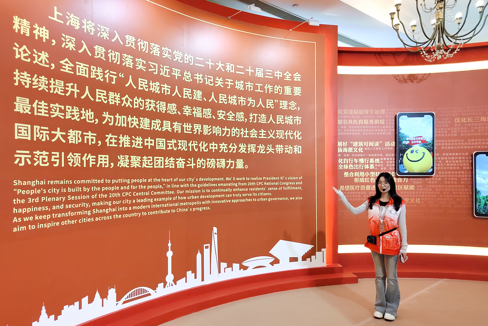 志愿者们灵活运用新媒体、AI互动、沉浸式体验等多元手段,全景式展示上海把“为人民”和“人民建”更好统一起来,建设属于人民、服务人民、成就人民的美好城市的鲜活实践和丰硕成果。