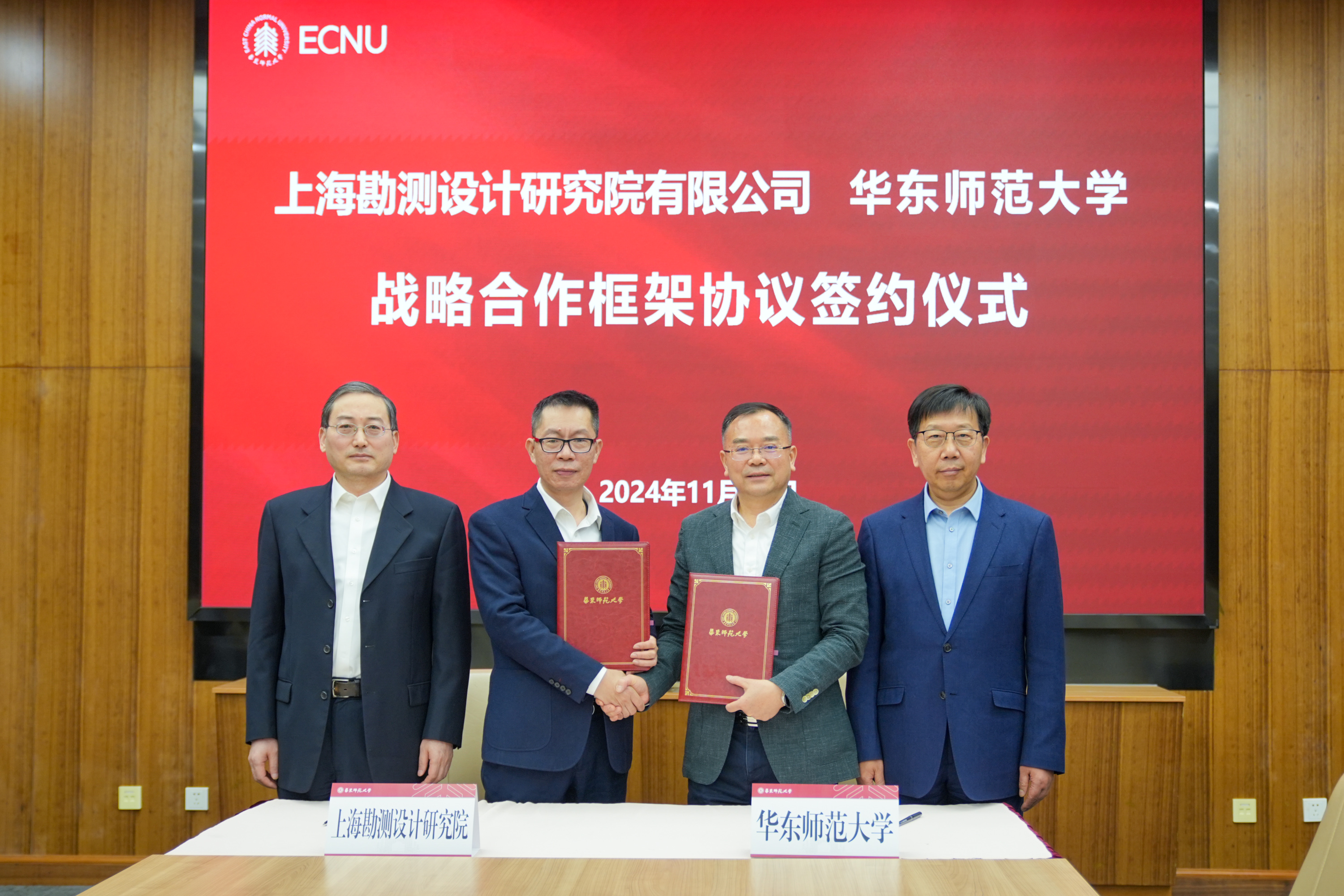 在华东师大校长钱旭红和上海勘测设计研究院有限公司纪委书记郑进的共同见证下,华东师大原副校长周傲英与上海勘测设计研究院有限公司首席专业师、总工程师林毅峰共同签署了《上海勘测设计研究院有限公司-澳门永利皇宫官网入口战略合作框架协议》。签约仪式由华东师大副校长施国跃主持。