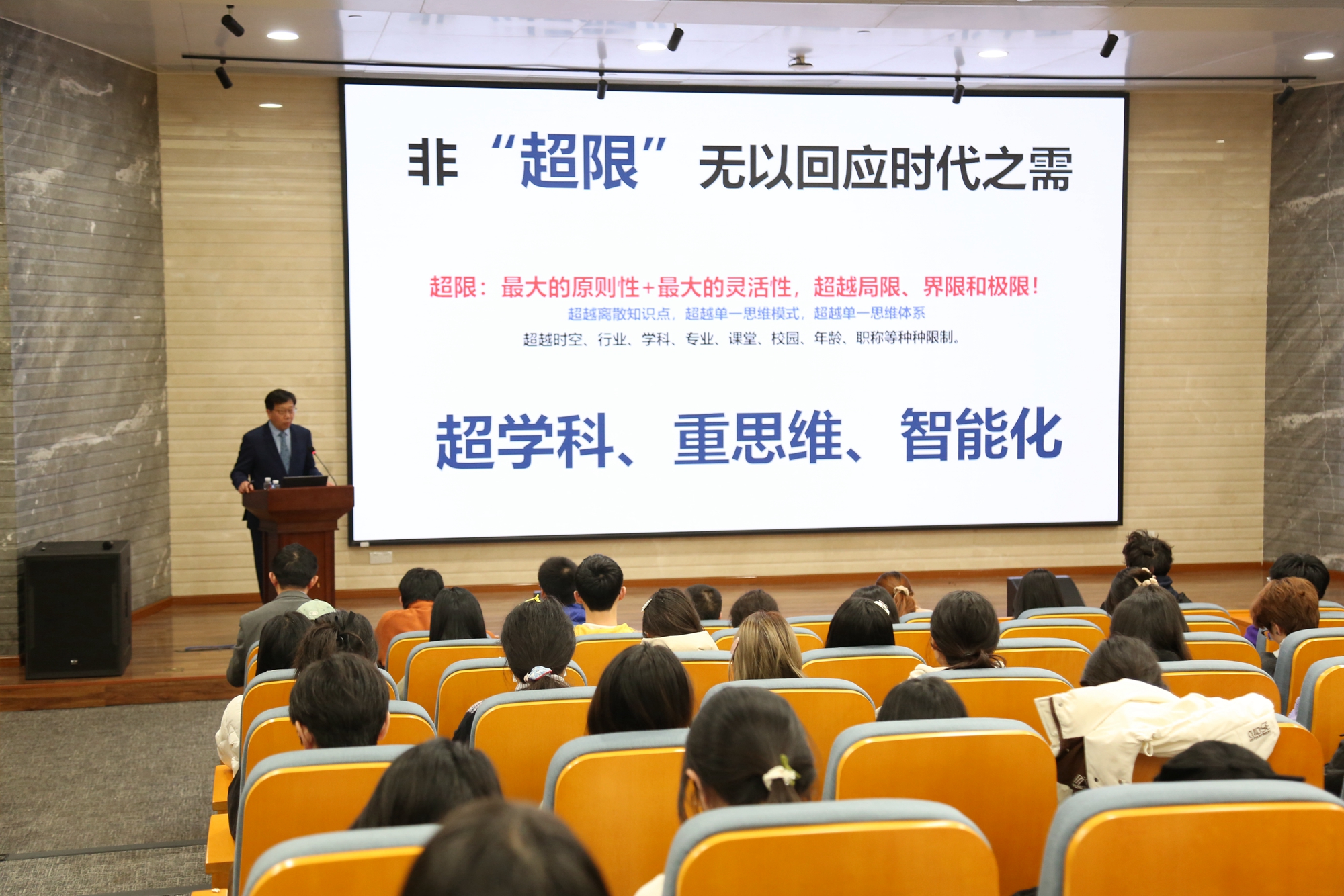 “‘超限’,就是要用最大的原则性和最大的灵活性来超越离散知识点,超越单一思维模式和单一的思维体系,超越时空、行业、学科等种种局限、界限与极限。”钱旭红指出,“超限”理念在高等教育的实践,要抓住三个关键词,即“超学科”“重思维”“智能化”。