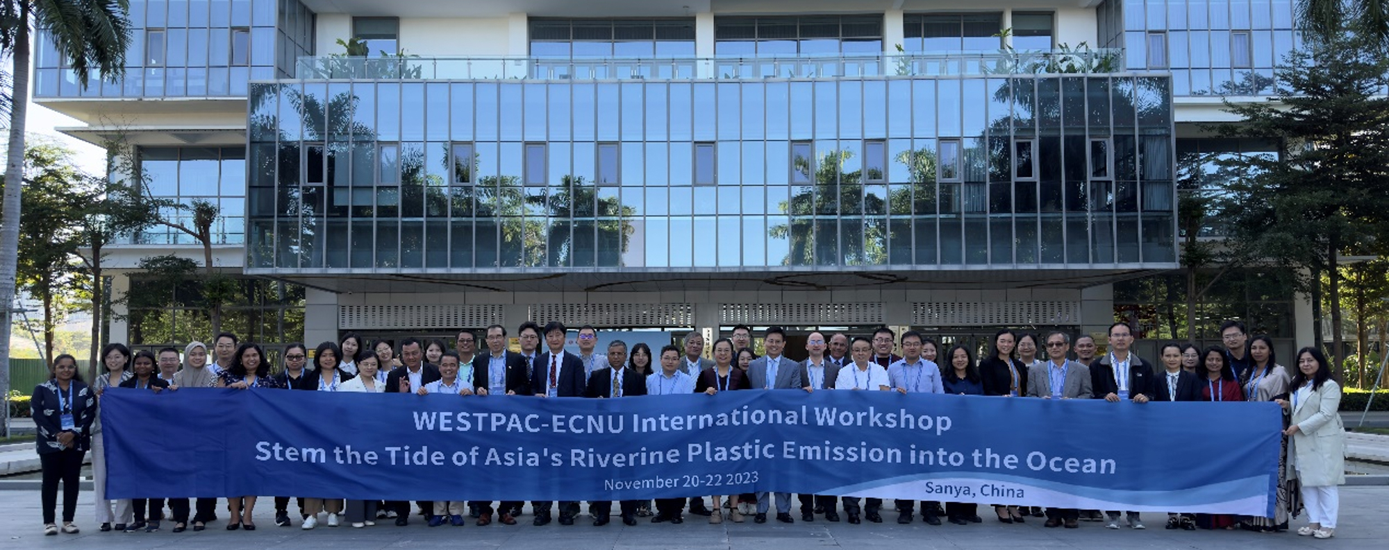 2022至2023年间,项目团队召开系列线上会议,细化项目的研究内容和实施方案。2023年11月20-22日,团队在华东师大海南研究院举办了“遏制亚洲河流塑料垃圾向海洋排放”国际研讨会。来自孟加拉国、中国、埃及、印度尼西亚、马来西亚、巴基斯坦、日本、菲律宾、斯里兰卡、泰国和越南11个国家近50位知名学者、政府、企业以及非政府组织专家代表等参加了本次会议,一致达成了在亚太地区选取典型试点河流开展第一阶段合作研究的意向,成立了各国研究现状评述以及河流塑料通量研究方法学两个工作组,为后续工作的开展奠定了坚实的基础。