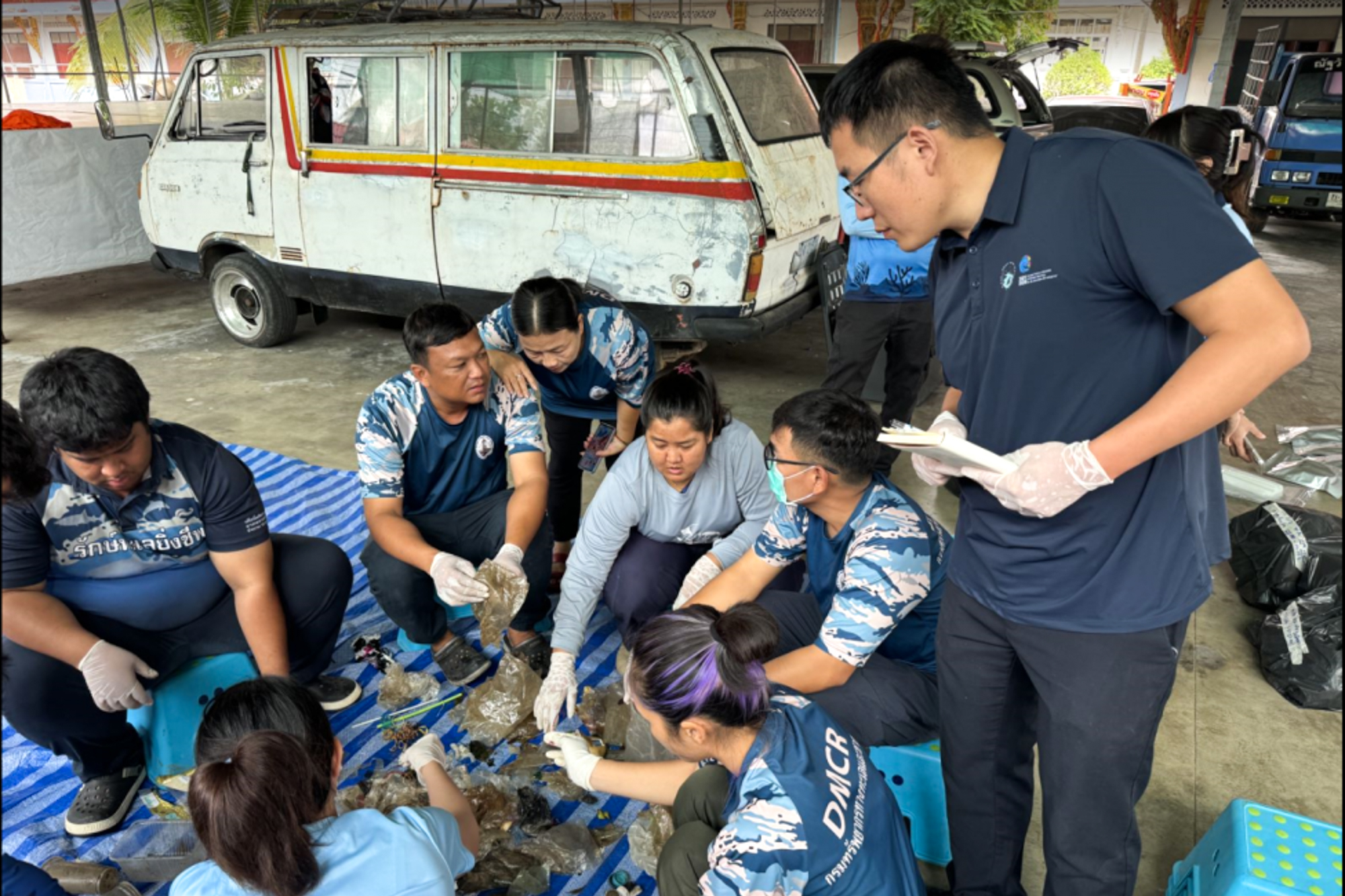 团队在泰国湾五条主要河流塑料垃圾的分类现场 (2024年7月,泰国 安帕瓦)