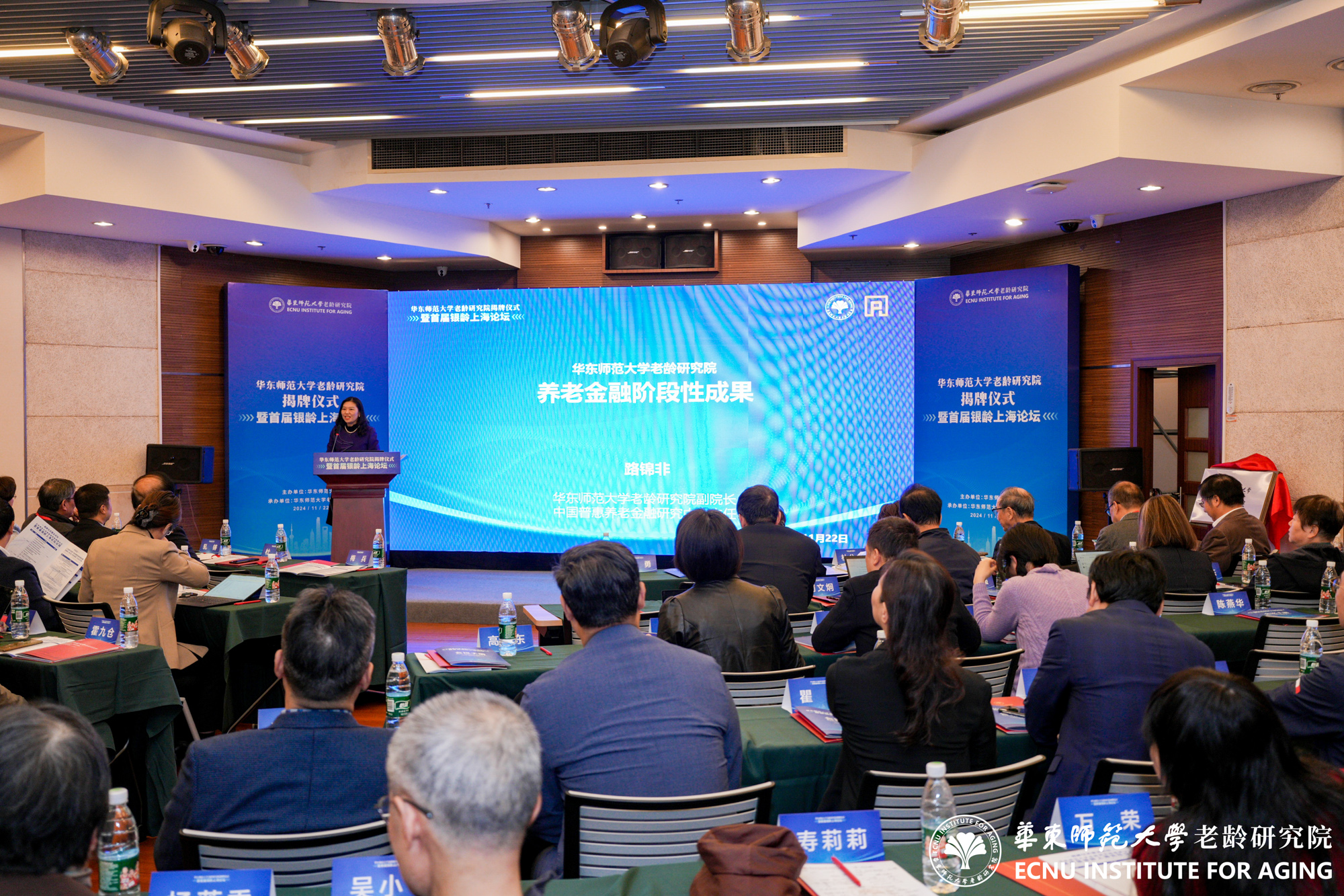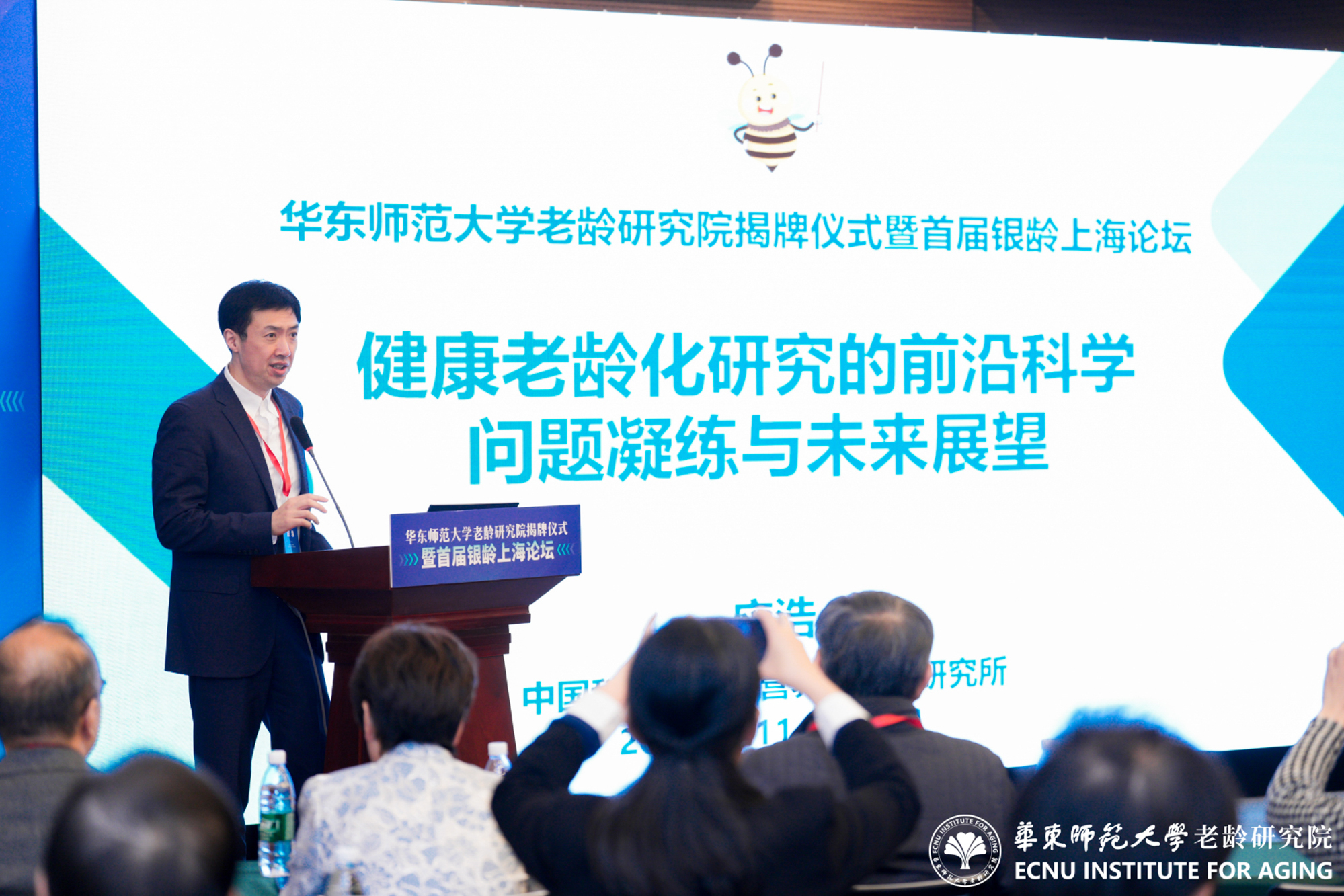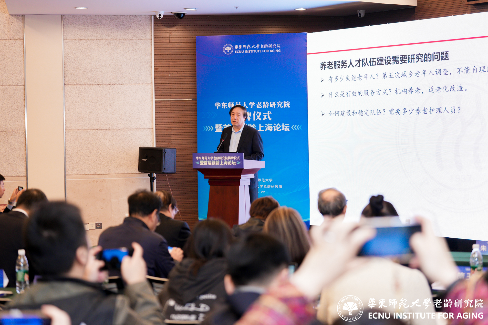 11月22日,澳门永利皇宫官网入口老龄研究院成立揭牌仪式暨首届银龄上海论坛举行。来自全国百余位老龄研究同仁齐聚澳门永利皇宫官网入口普陀校区,共同见证揭牌仪式,5位全国老龄研究领域知名专家作主旨报告,围绕养老保障、养老服务、银发经济、健康老龄化、老年教育等主题进行了深入探讨。澳门永利皇宫官网入口党委常委、组织部部长朱军文主持揭牌仪式。
