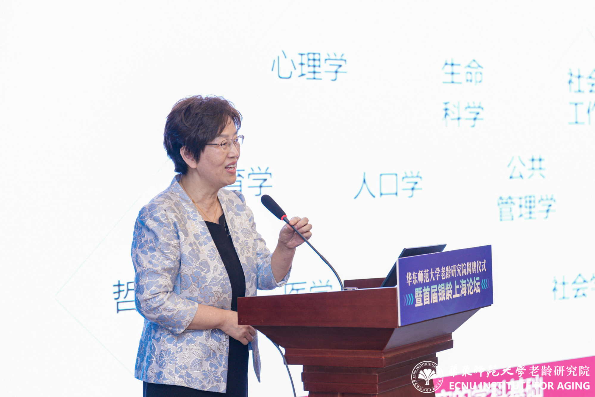 梅兵在致辞中对各界领导、专家和嘉宾在老龄相关学科发展及研究院组建过程中给予的支持和关心表达诚挚谢意。她指出,人口老龄化是我国的基本国情,事关国家发展全局和百姓福祉。华东师大作为一所具有深厚学术底蕴和广泛社会影响力的高等学府,始终将服务国家战略和地方经济社会发展作为使命担当。