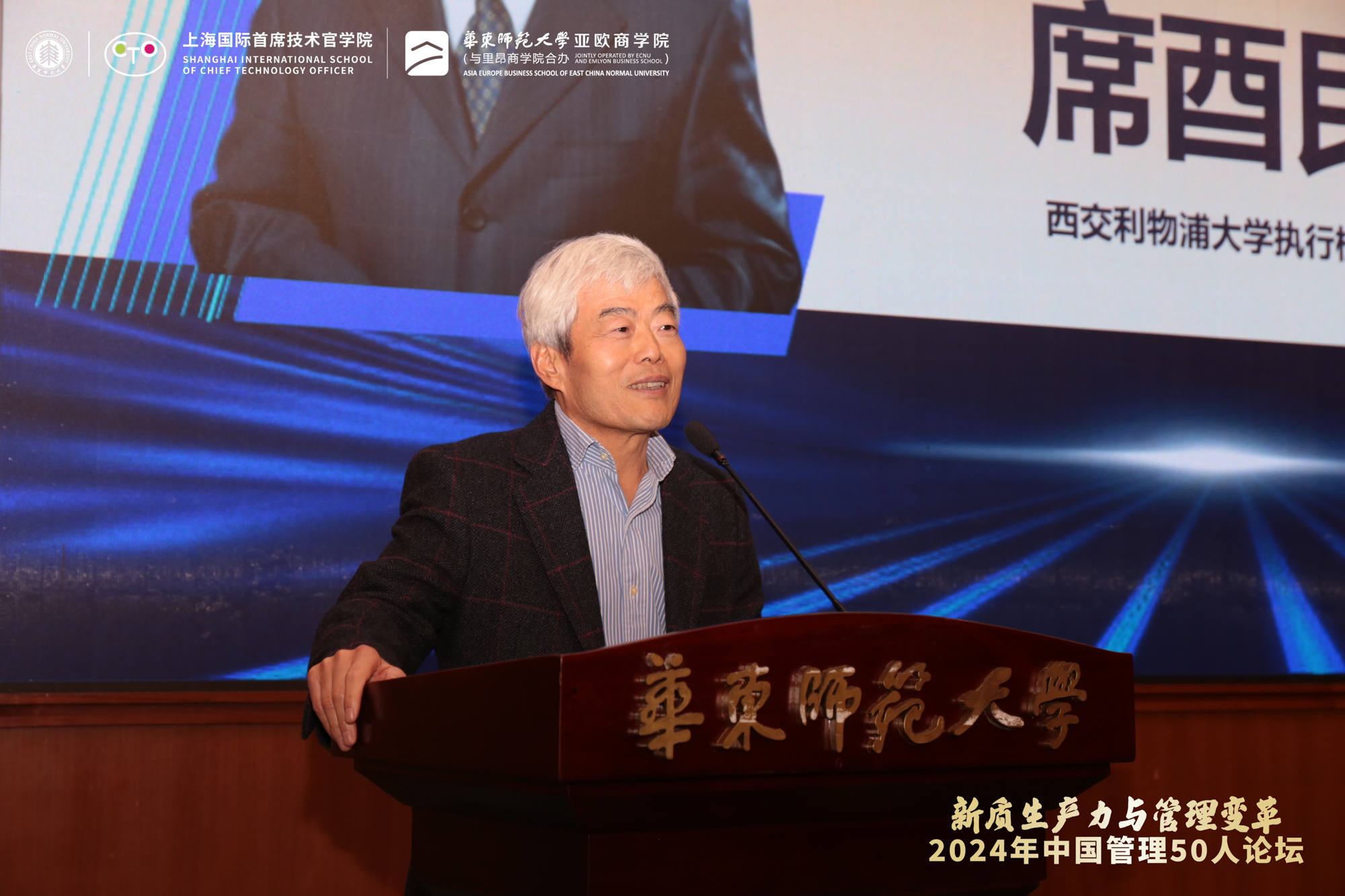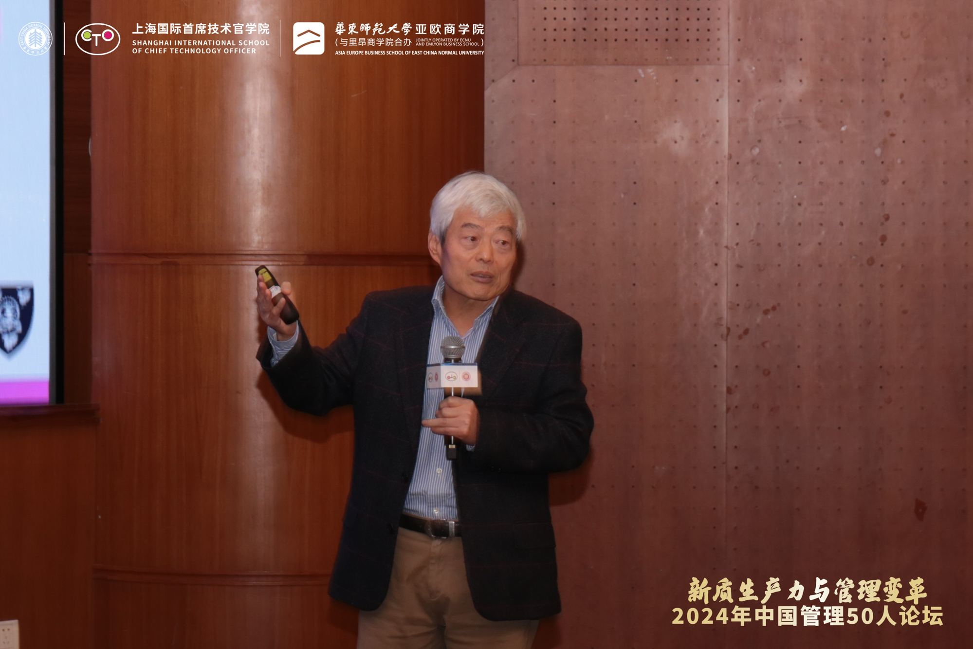 华东师大上海国际首席技术官学院执行院长、亚欧商学院中方院长何佳讯教授代表举办方致辞。他表示,在过去7年多的时间里,“中国管理50人论坛”在中国管理学界做出了积极的贡献。新一轮科技革命给管理学带来了极大挑战,也迎来了发展的大机遇。如何深刻理解新质生产力、发挥管理作为新生产要素的作用,正是当前管理学的重大问题。华东师大在校长钱旭红院士的领导下提出“科技商学”交叉学科建设,引领育人创新,面向新质生产力进行科创人才培养,建立“人工智能与创新科学”等新学科领域,探索为新质生产力发展做出新贡献。
