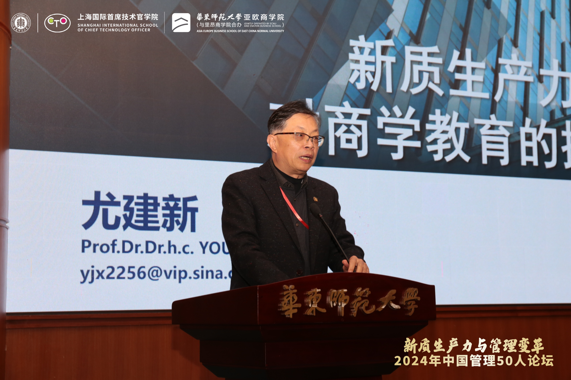 华东师大上海国际首席技术官学院执行院长、亚欧商学院中方院长何佳讯教授围绕“新质生产力与科技商学:变革与实践”进行主旨演讲。他指出,今天中国管理学的发展迎来了新的机遇,即基于发展新质生产力的实质性问题,破解科学与商业的悖论,立足产业技术前沿,以生产要素协同匹配和创新性配置为核心,加快发展“科技商学”。此外,何佳讯教授还介绍了学院“科技商学”教育和科研实践。