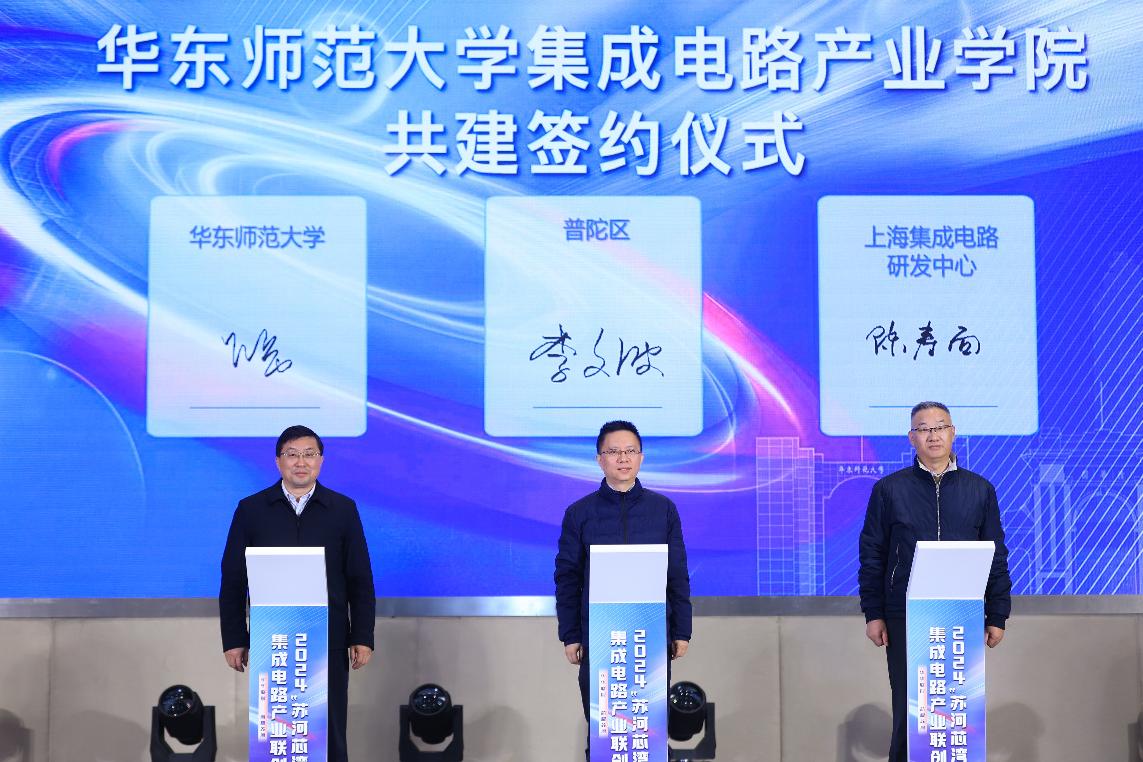 同时,举行澳门永利皇宫官网入口集成电路产业学院共建签约仪式,由普陀区、澳门永利皇宫官网入口和上海集成电路研发中心三方合作共建。学院位于“苏河芯湾”核心区,通过集成电路智能虚拟制造平台(AI Virtual Fab)和集成电路EDA创新中心建设,将从创新性研究、产业集群带动等方面助力普陀构建集成电路设计产业链,打造具有竞争力的集成电路产业集群。