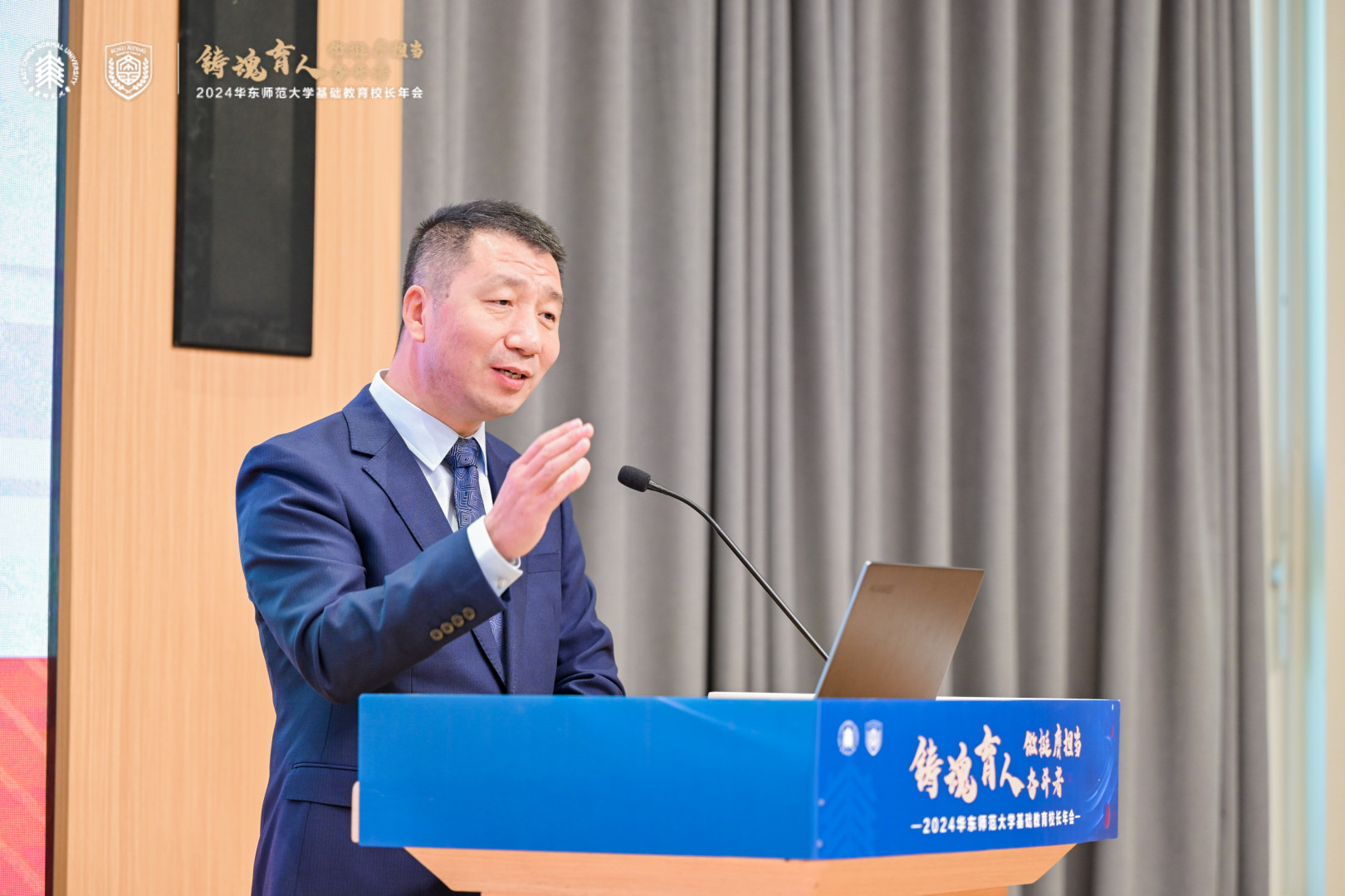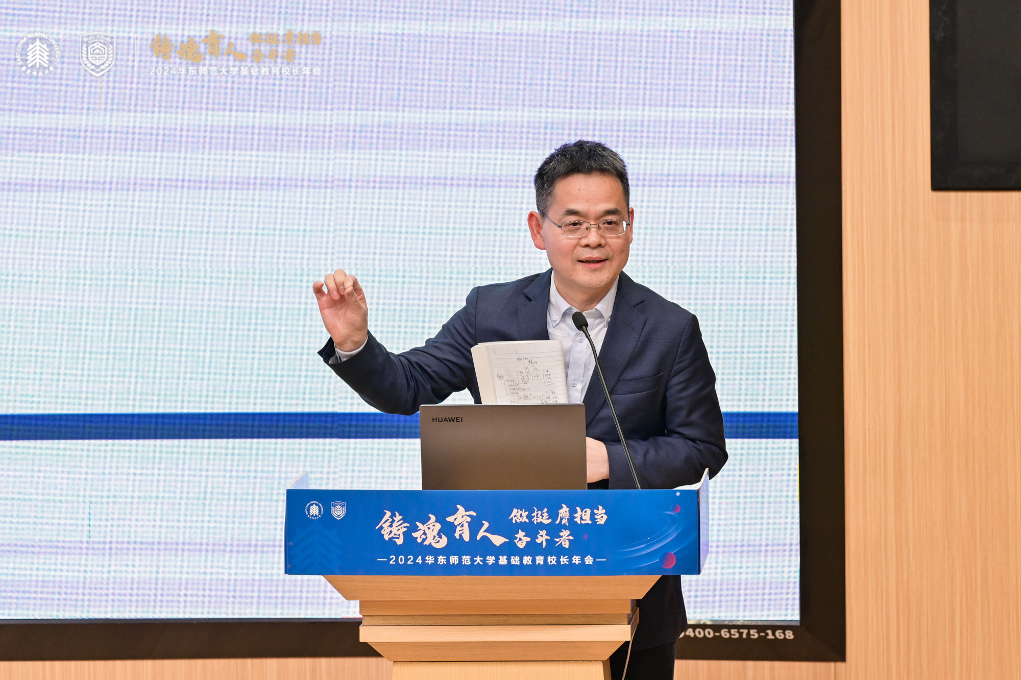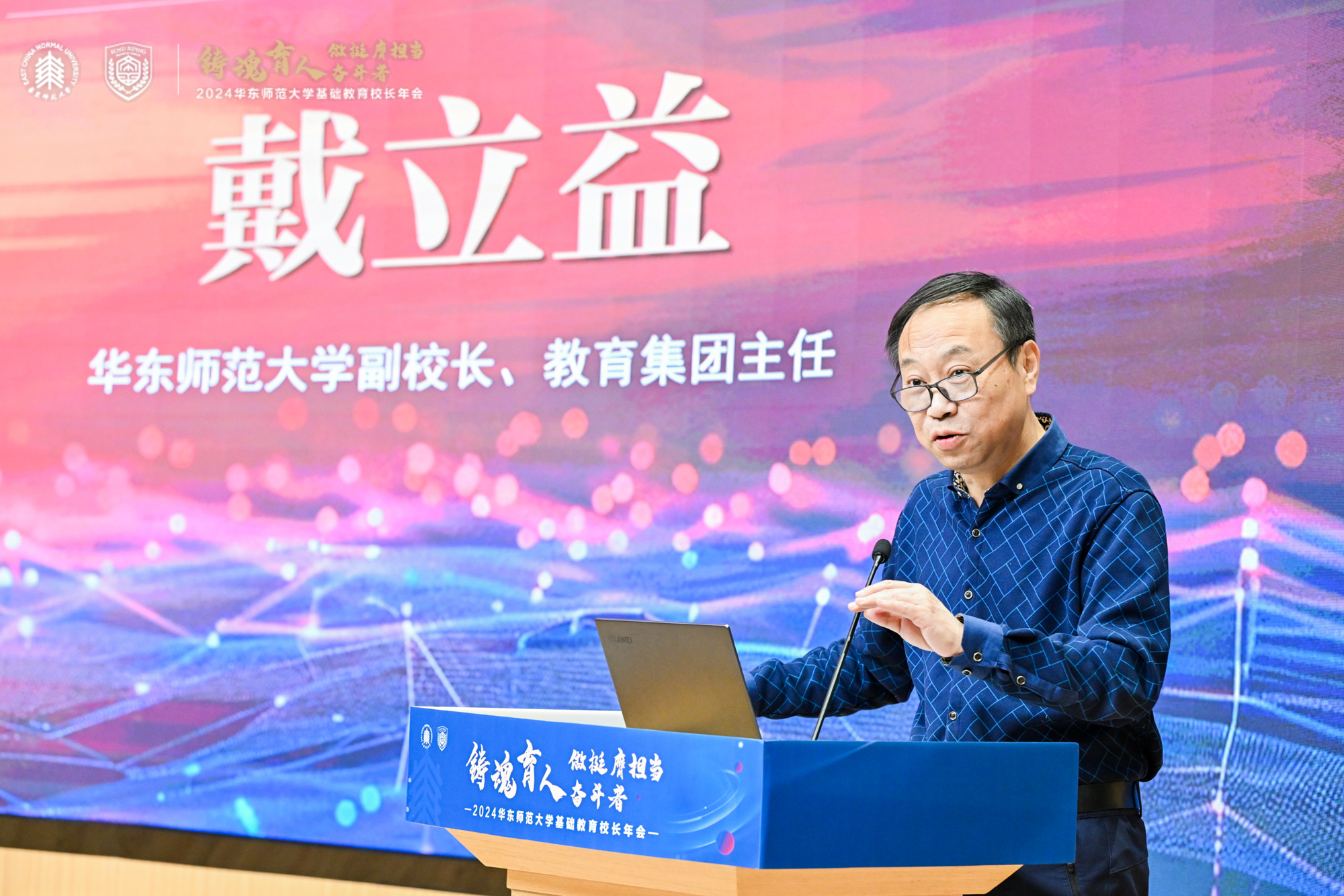 澳门永利皇宫官网入口副校长、教育集团主任戴立益表在讲话中,全面回顾总结了2024年澳门永利皇宫官网入口教育集团校的办学成绩,并对年会主题进行了解读。他建议校园长注重培养日常行政管理能力、课程领导力和学校迭代发展路径的选择能力;着重阐释了新时代“大先生”之大,在于历史跟未来的大维度、本土和世界的大格局、教室和社会的大课堂、循规和突破的大智慧、小我和大我的大情怀;描述了华师教育人的群像:卓越的霸气和睿智的灵气、开放的张力和包容的定力,及“好学近乎知,力行近乎仁”的品质;并期待未来可以看到集团校在拔尖创新人才培养、AI赋能教育发展、教育评价改革、学生健康成长方面的探索案例。
