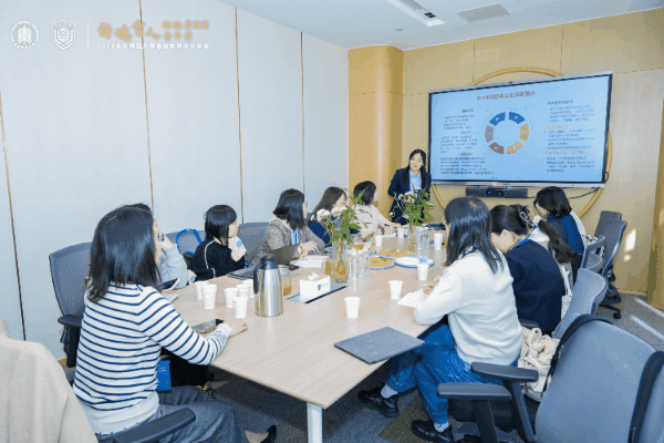 华东师大职业发展中心主任章晶晶交流了华东师大全学段的生涯育人体系和集团校在华东师大的招聘签约情况,并期待通过和集团校共建校内外生涯导师库、拓展生涯教育实习实践基地等,以共建生涯育人链条。