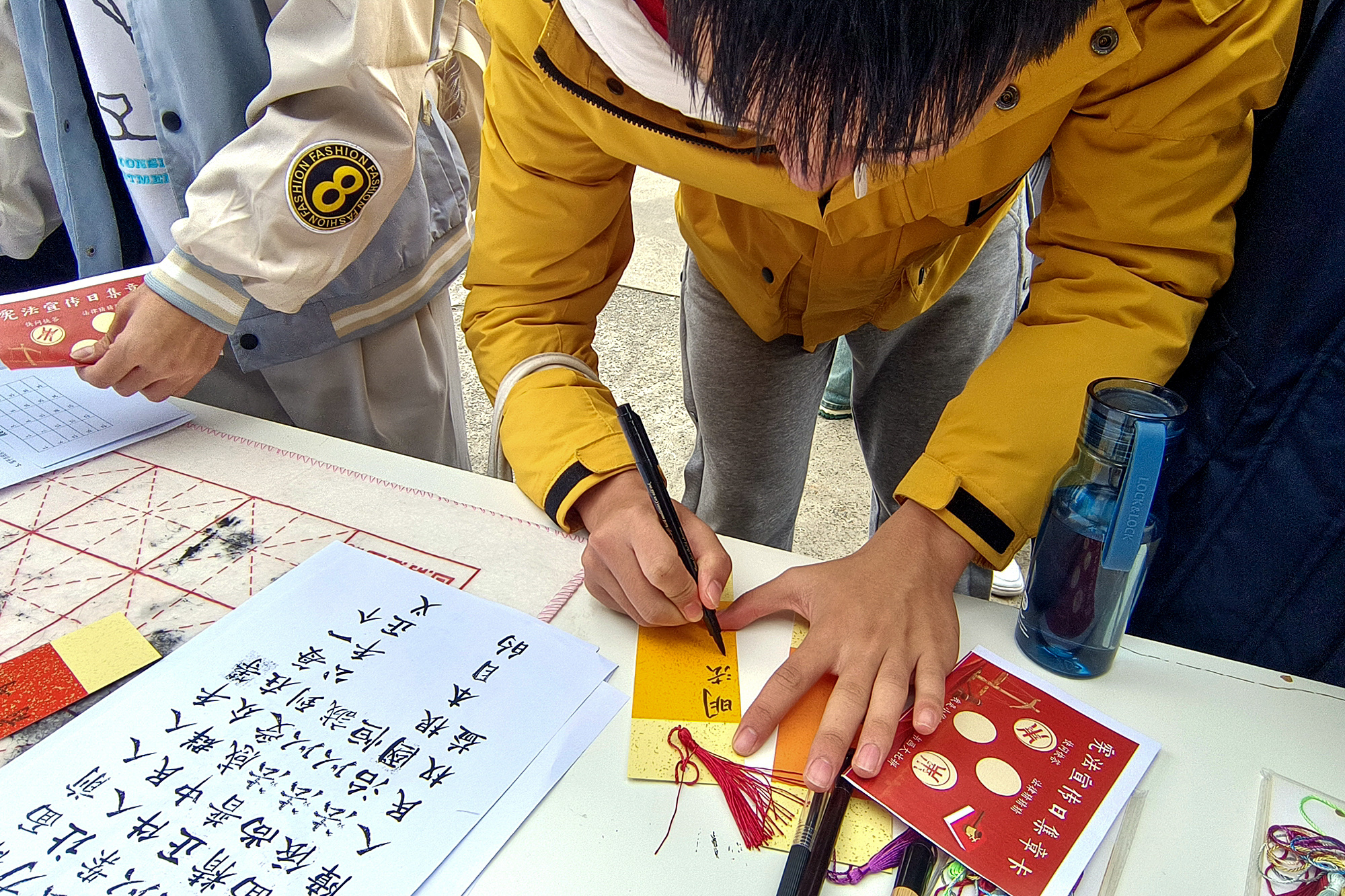 为进一步普及宪法法治知识,营造宪法教育浓厚氛围,学生社团“青年法学会”在闵行校区学生发展空间楼前,开展趣味互动活动。通过法律知识竞答、法律谜语、法条案例连连看、笔墨绘寄语等妙趣横生的互动环节,广泛动员师生学习宪法、民法典、教育法律法规和国旗法、国歌法、国徽法等相关法律知识。