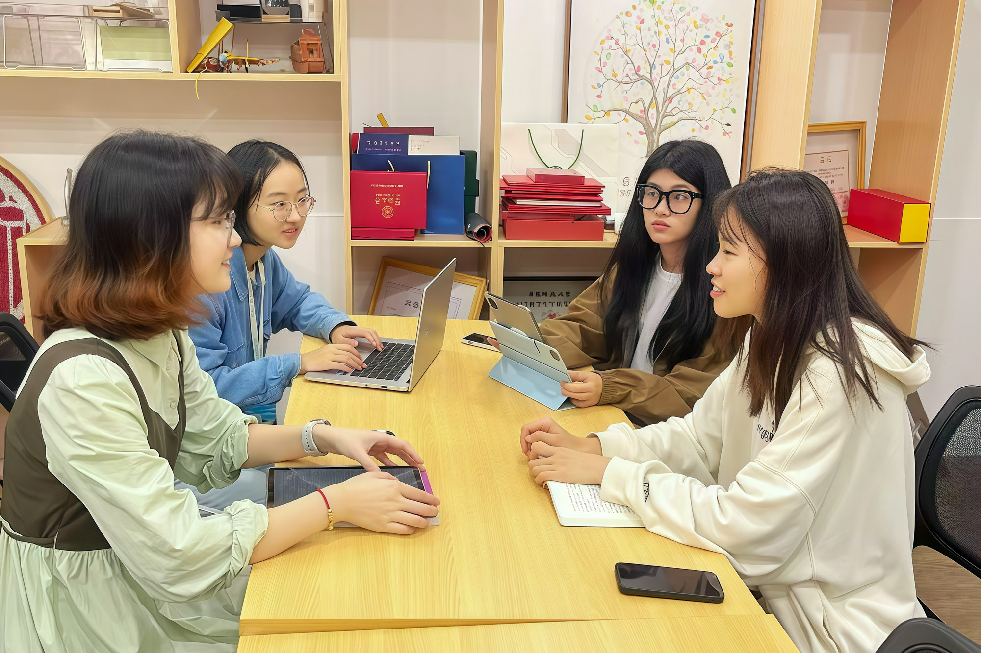 “网络暴力治理”项目研究团队(左起:法学院裘奕瑶、袁晔,软件工程学院王文,传播学院施靖雯)