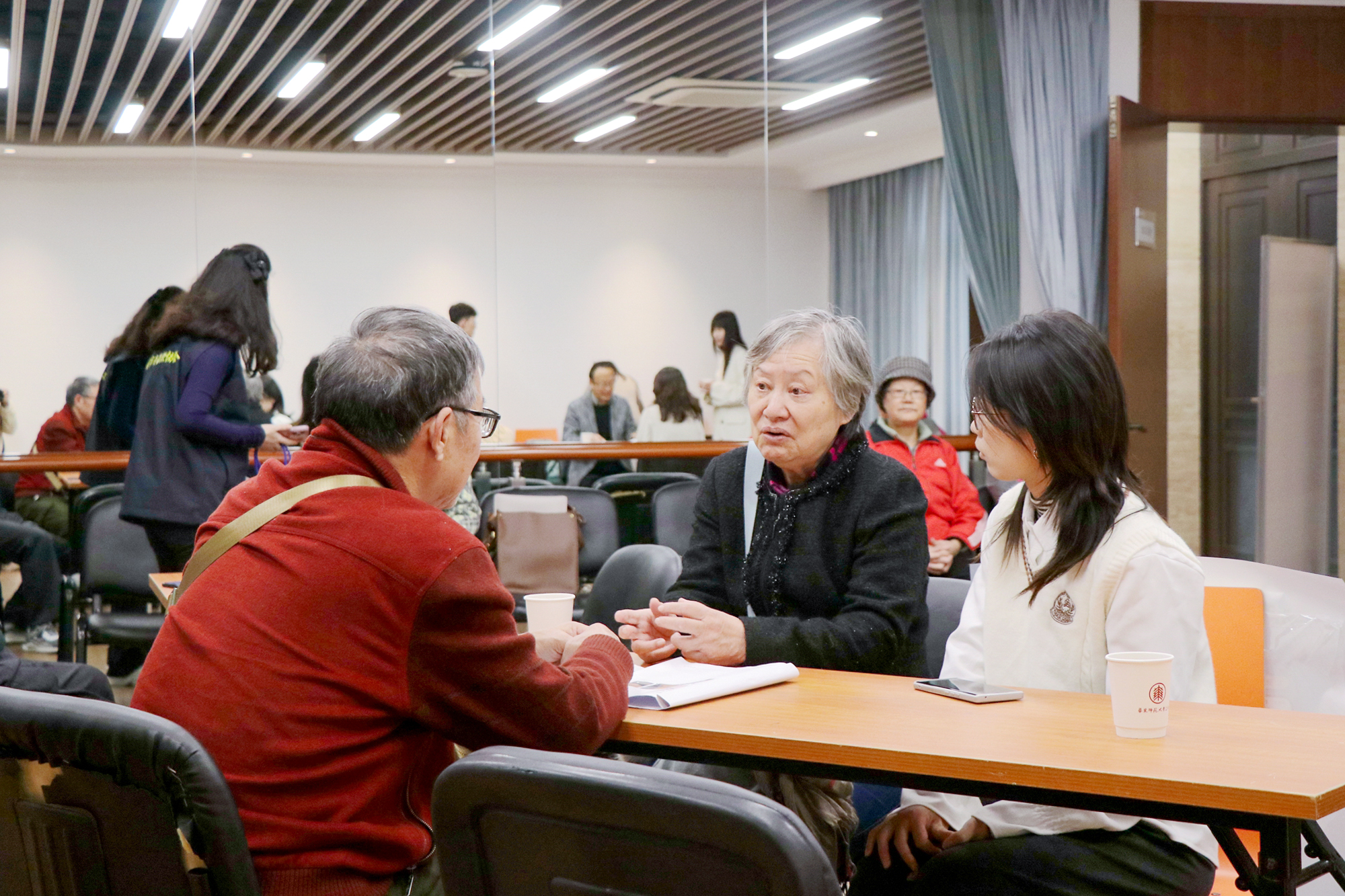 在华东师大普陀校区工会大厅,“大手牵小手 法援开放日”活动现场气氛热烈。在法学院关工委老同志带领下,法学院师生志愿者一起为离退休老同志、师大一村居民、在校师生等提供现场法律咨询服务,共筑权益防护墙,传递法治的力量和温度。