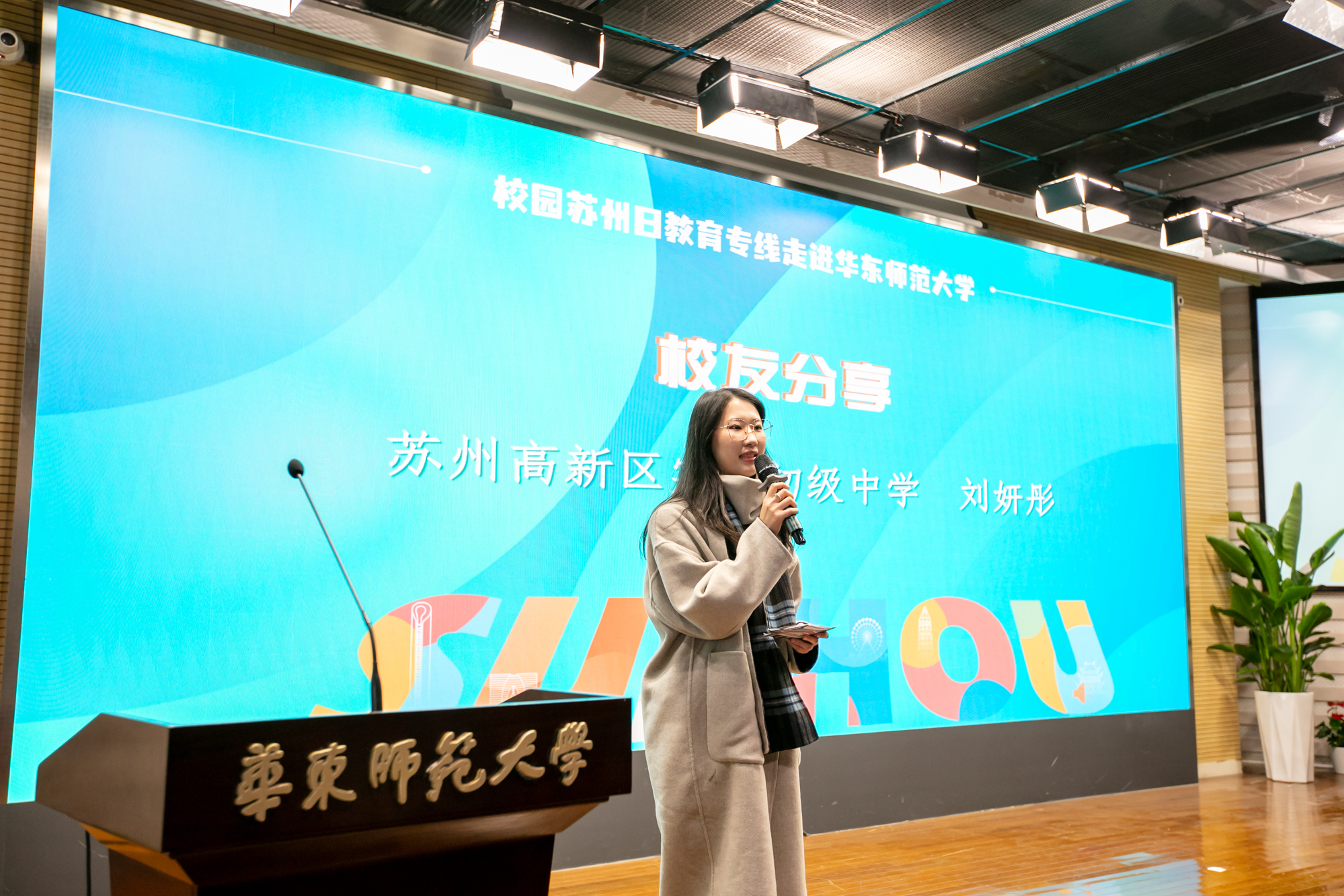 伴随宣传片《苏州有YOUNG 教“遇”未来》精彩呈现,宣介会正式拉开帷幕。周志芳在致辞中表示,她高度肯定了华东师大为苏州教育作出的贡献。双方在学校共建、教师培养、实习实践等多个领域深入合作,目前,苏州中小学有1000多名在职教师毕业于华东师大,成为推动区域教育改革发展的重要力量。她诚邀更多华东师大学子来到苏州,施展才能、成就自我,共创苏州教育的美好未来。