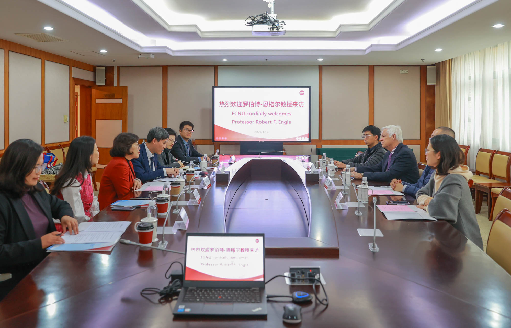 恩格尔教授对我校的热情接待表示感谢。他表示,华东师大在上海纽约大学的创建和发展历程中发挥了十分重要的作用,今天能够亲自来到上海纽约大学建设开始的地方,他倍感欣喜,并对未来在经济金融学科领域内的进一步合作充满期待。