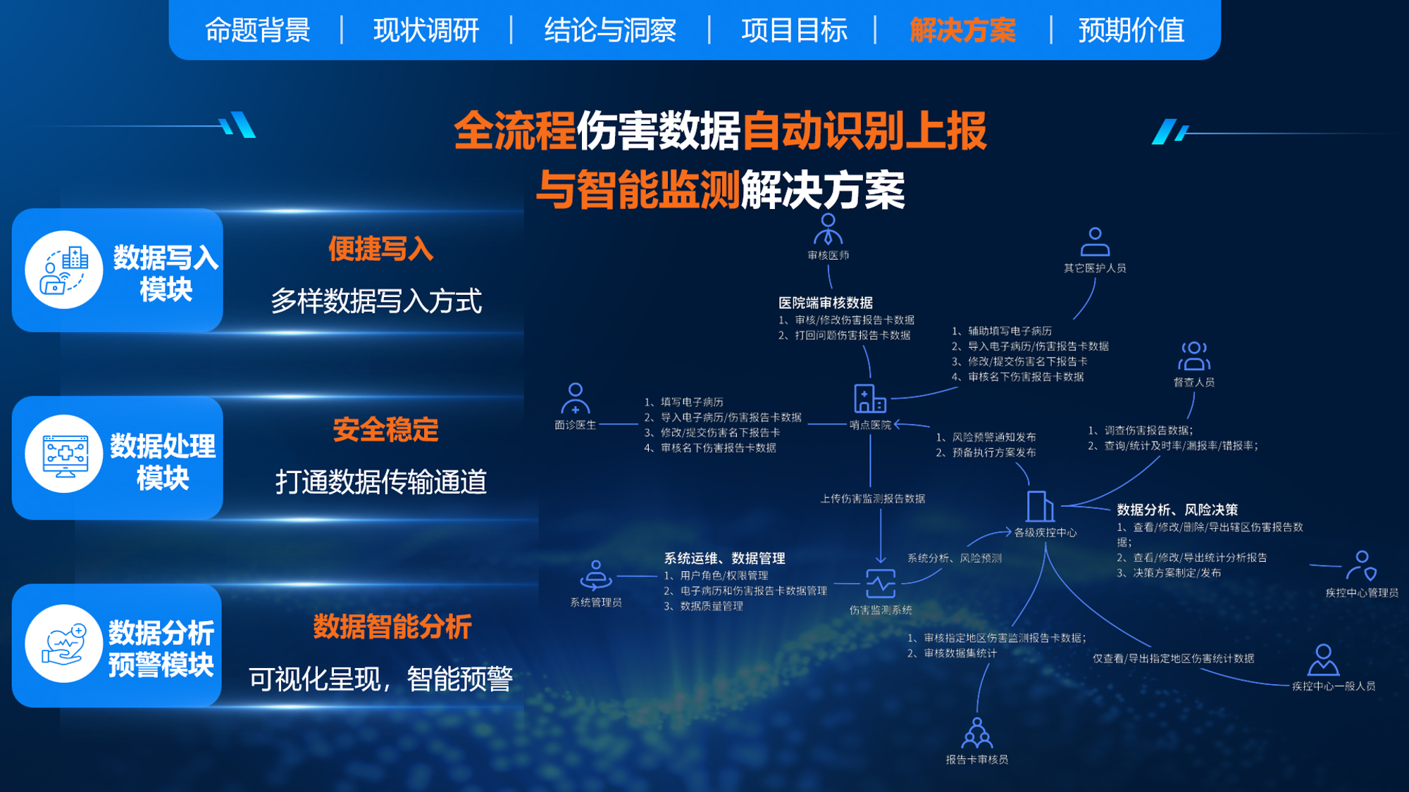 针对医疗机构伤害上报流程复杂、系统对接不畅及上报数据时效性与准确率不足、上报率和完整度低的问题,“专业团队蛋仔派对”团队设计、提出《医疗机构伤害数据自动识别上报与智能监测系统设计》方案。