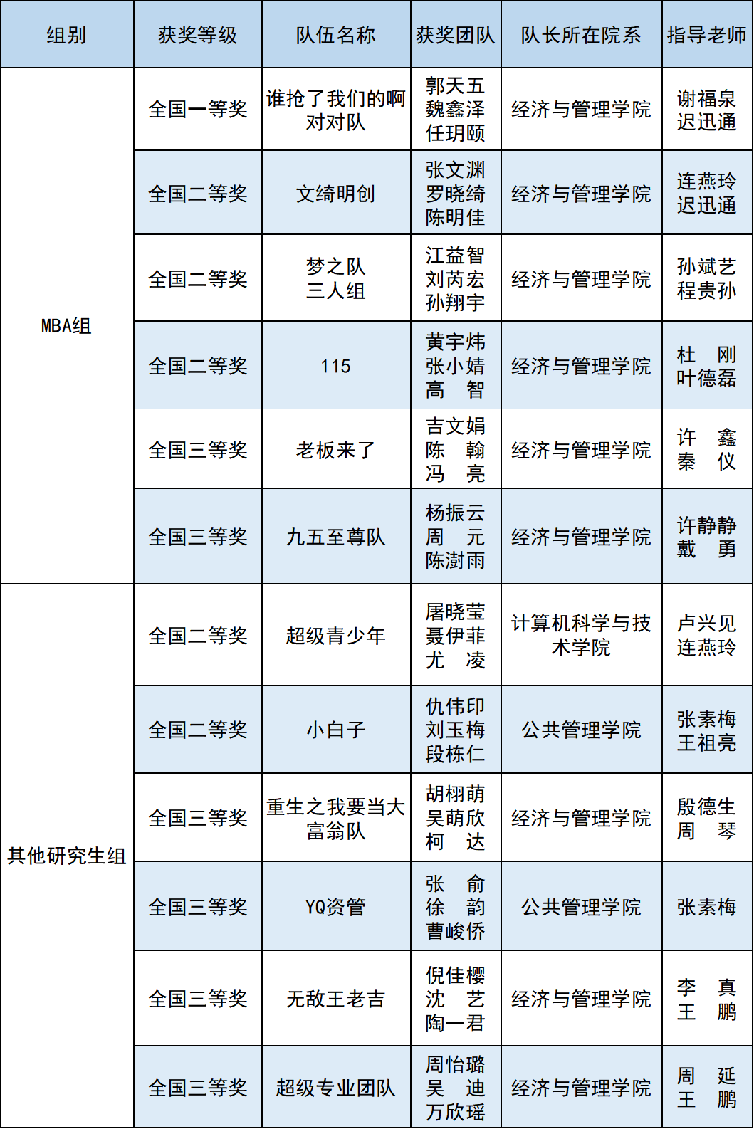 经济与管理学院MBA参赛队伍“专业团队蛋仔派对”团队获商业分析与智能应用赛道全国一等奖。