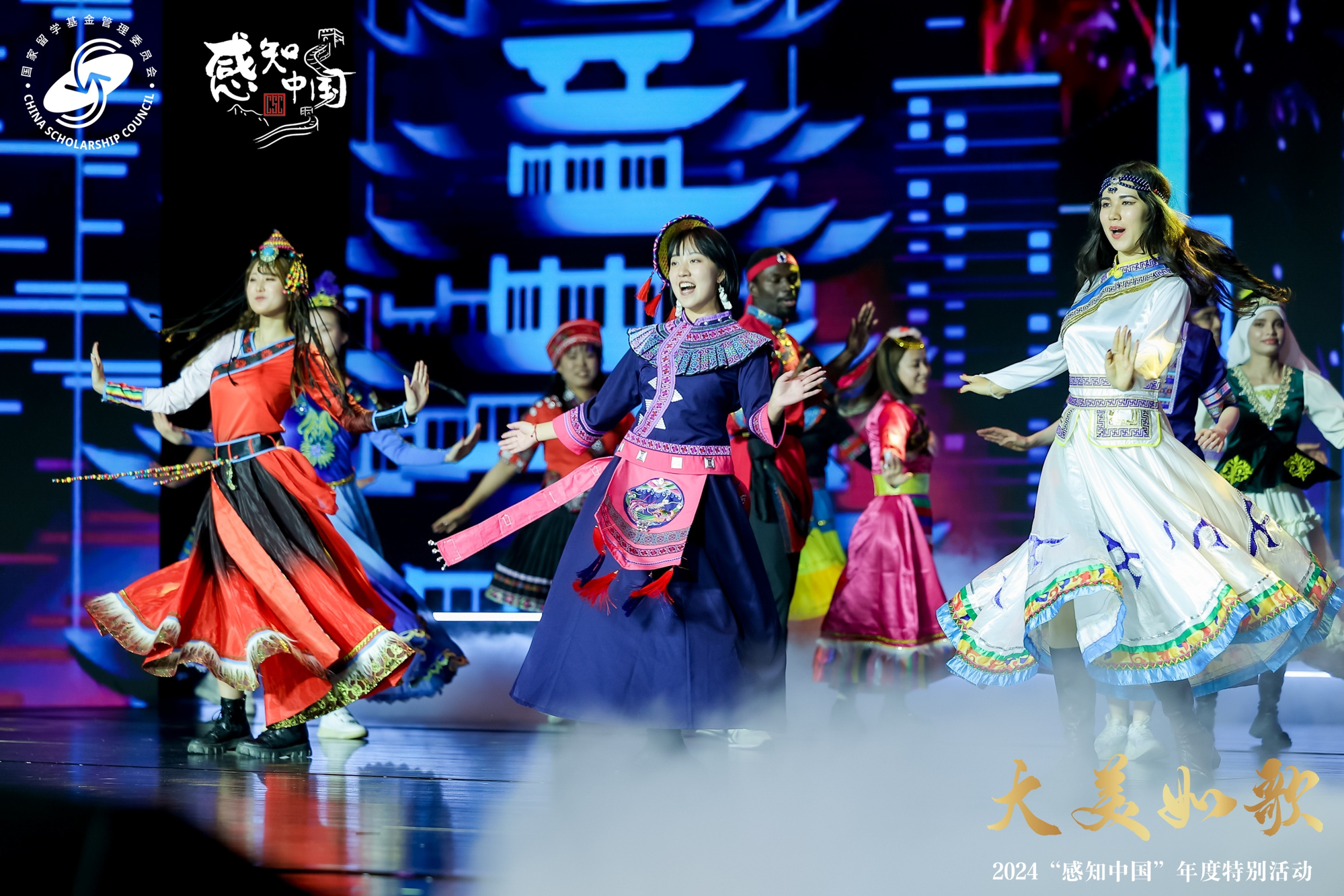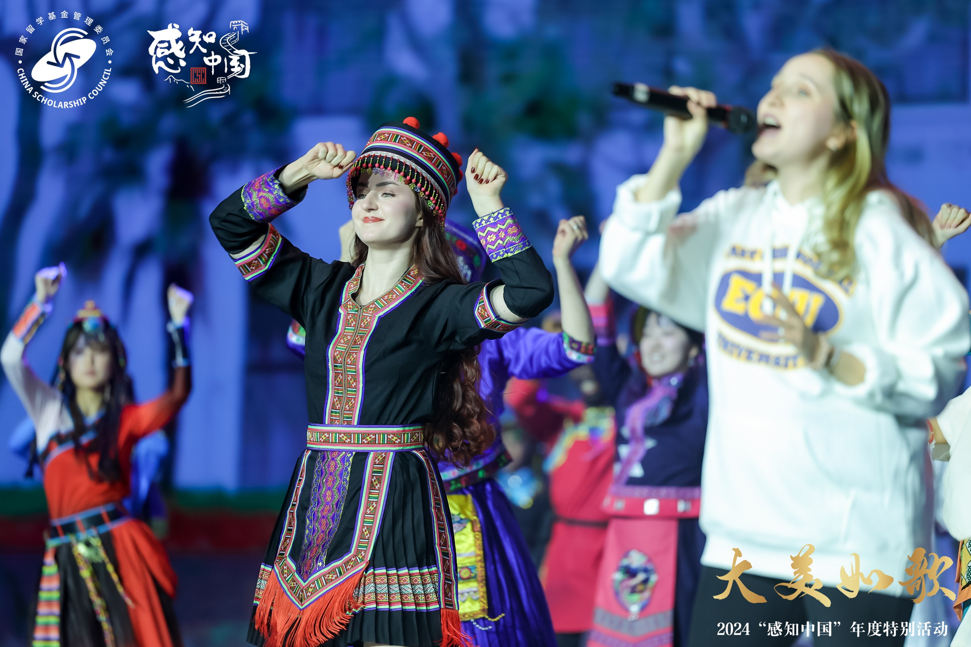 集体舞《大美如歌》和歌曲合唱《携手并肩》让观众感受到了世界文化的多姿多彩。