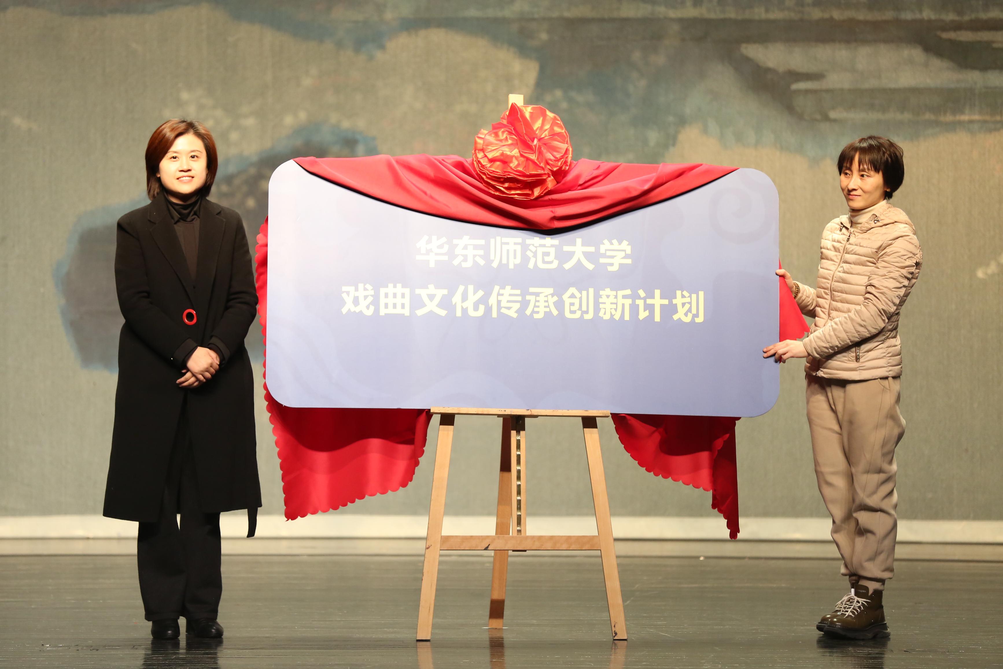 上海戏剧协会副秘书长戴颖、华东师大党委宣传部常务副部长刘麒为“澳门永利皇宫官网入口戏曲文化传承创新计划”揭幕