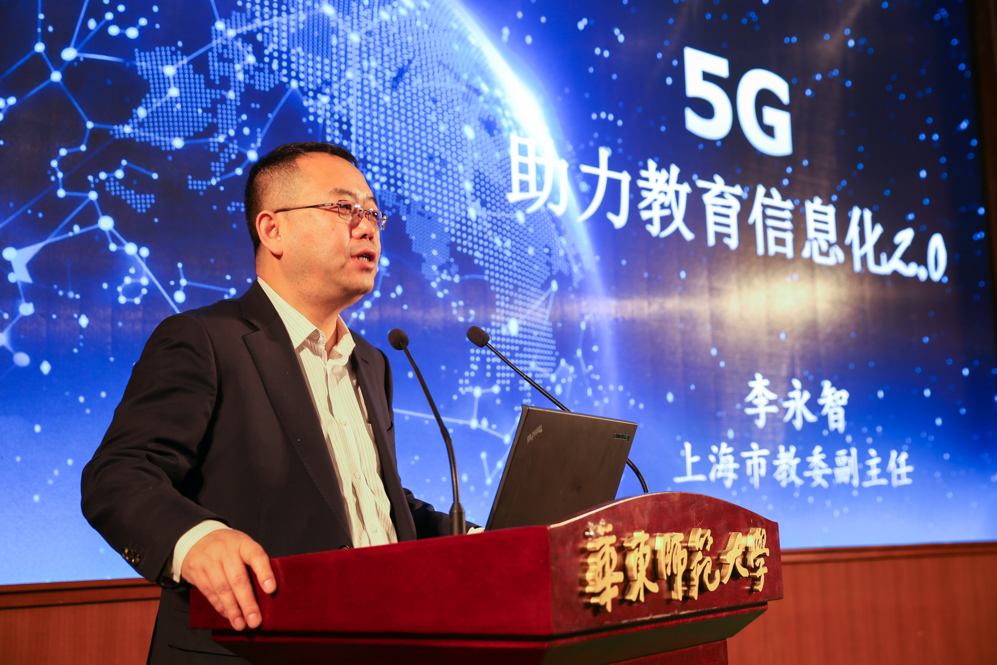 主题演讲环节由教师发展学院院长闫寒冰主持。上海市教育委员会副主任李永智在主题为“5G助力教育信息化2.0”的演讲中提出,5G技术作为新时代的支撑,将致力于为每个学生提供最适合的教育,以发掘学生潜质、激发学生兴趣、引导学生自主学习、成就学生价值为原则,最终实现数据驱动的大规模因材施教这一目标,教育工作者应坚守教育规律和教育初心,基于学生的未来开展教育。