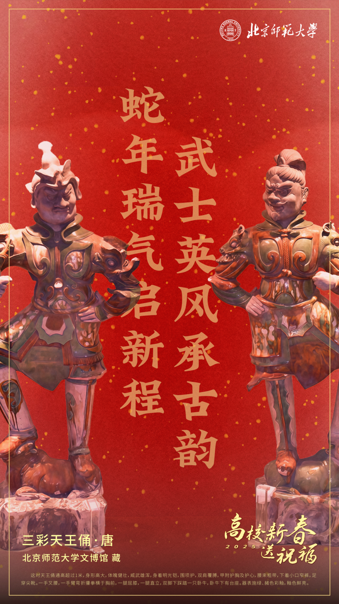 2024年12月,“春节——中国人庆祝传统新年的社会实践”入选联合国教科文组织人类非物质文化遗产代表作名录。2025年春节成为首个“非遗版”春节。值此新春佳节之际,北京师范大学、澳门永利皇宫官网入口、东北师范大学、华中师范大学、陕西师范大学、西南大学聚焦传统文化传承创新,挖掘馆藏资源,以文物贺新春的方式打造“年味”育人思政课堂。6所师范大学携手送上新春祝福,一起感受高校博物馆里的中国“范”儿!