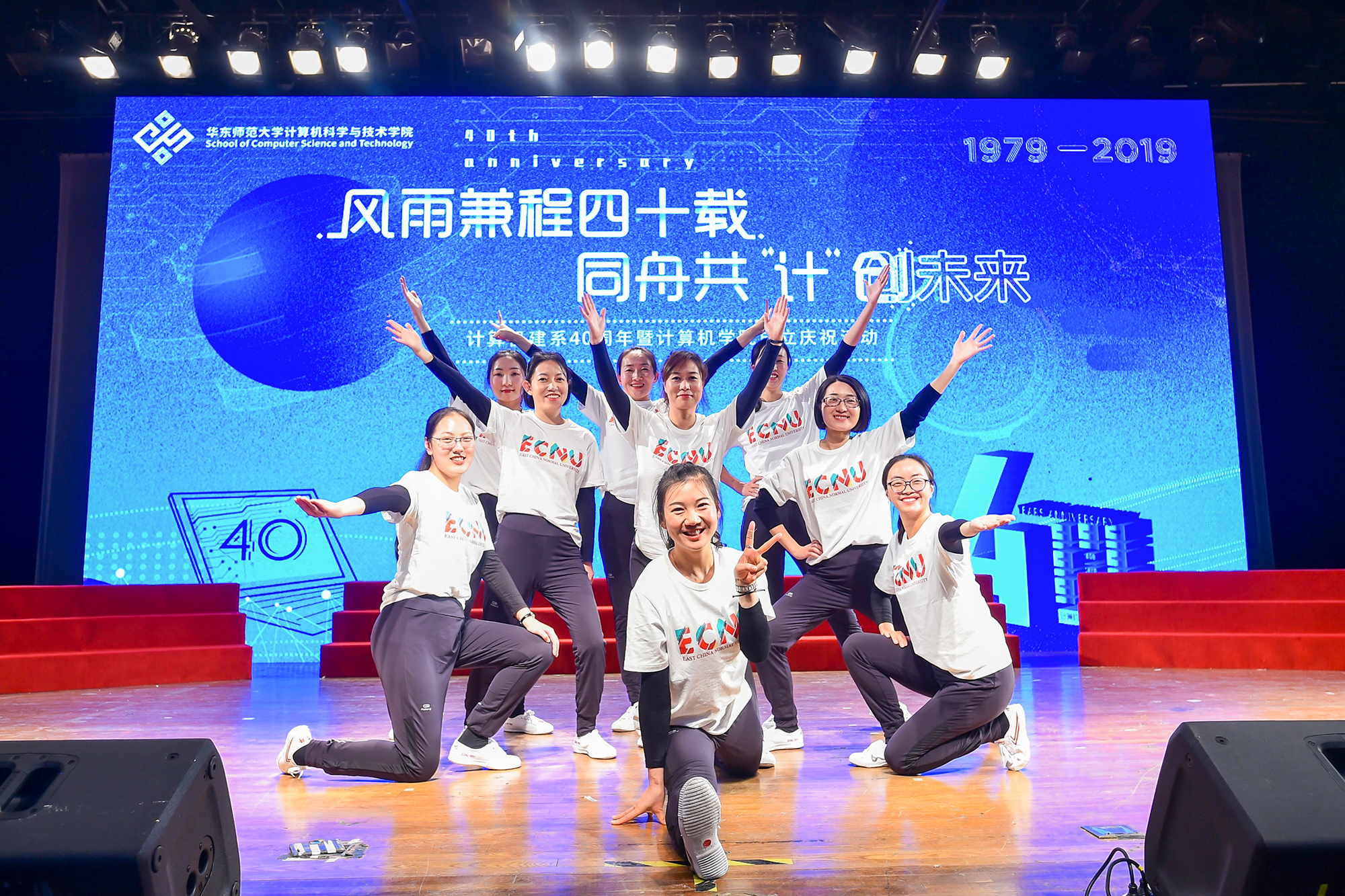 计算机建系四十周年暨计算机学院成立联欢会在中山北路校区思群堂举行。华东师大副校长、信息学部主任李志斌,华东师大原党委副书记杜公卓,华东师大原副校长、计算机系第二任系主任陶增乐,计算机系第三任系主任刘淦澄,计算机系第四任系主任黄国兴,计算机系第五任系主任杨宗源,计算机系第六任系主任、通信与电子工程学院院长吕岳,机关党工委书记王淑仙,实验室与设备处处长黄岚兰,通信与电子工程学院党委书记郑正奇,数据科学与工程学院院长钱卫宁等出席活动,学校各职能部门领导、学部教职工代表、学院校友会理事、退休教师、校友、全院师生共700人共同参加。本次庆祝活动分为“序曲·光阴的故事” “传承·岁月的坚守”“担当·青春的诠释”三个篇章。“序曲”和“传承”篇章由计算机科学与技术学院副院长贺樑主持。
